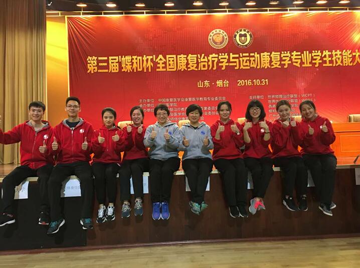 20161030日中午,bw必威西汉姆联官网运动康复系八名员工代表在系副主任矫玮、指导老师钱菁华的带领下抵达山东烟台,奔赴滨州医学院参加第三届全国康复治疗学与运动康复学专业员工技能大赛。此次我系共参加运动康复组(OT)和物理治疗组(PT)两个组别的比赛。