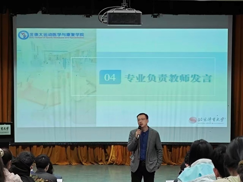 On April 25, 2025, the School of Sports Medicine and Rehabilitation at Beijing Sport University successfully held the "2021 Undergraduate Internship Summary Meeting and 2022 Undergraduate Internship Mobilization Meeting" in the Excellence Lecture Hall. The meeting was presided over by Dai Xu, Secretary of the School's Party Committee. School leaders, experts from internship partner institutions, professional teachers, and all undergraduate students attended the event. Through experience sharing and policy interpretation, the meeting provided guidance for students about to embark on their internships.