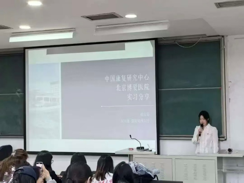 Sharing by Seniors: Outstanding interns from the Class of 2021 shared their experiences to provide "reference answers" for their juniors. Hu Yichen, who interned at Beijing Bo'ai Hospital of the China Rehabilitation Research Center, shared her internship journey. She detailed the internship locations, content, assessment methods, and key considerations. Hu Yichen highlighted that during the internship, students need to continuously improve their manual skills, collaborate with other therapists, and master the use of various treatment methods and equipment. Additionally, the hospital offers abundant learning opportunities, with skill development enhanced through small lectures and hands-on practice during rotations across multiple departments at the China Rehabilitation Research Center.