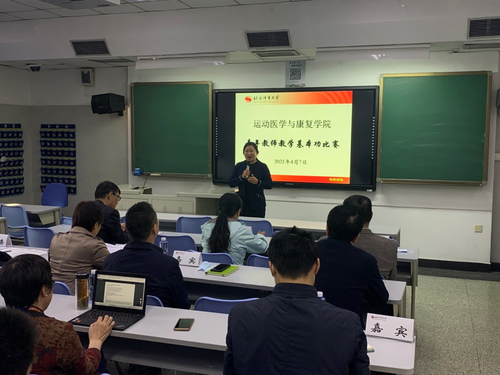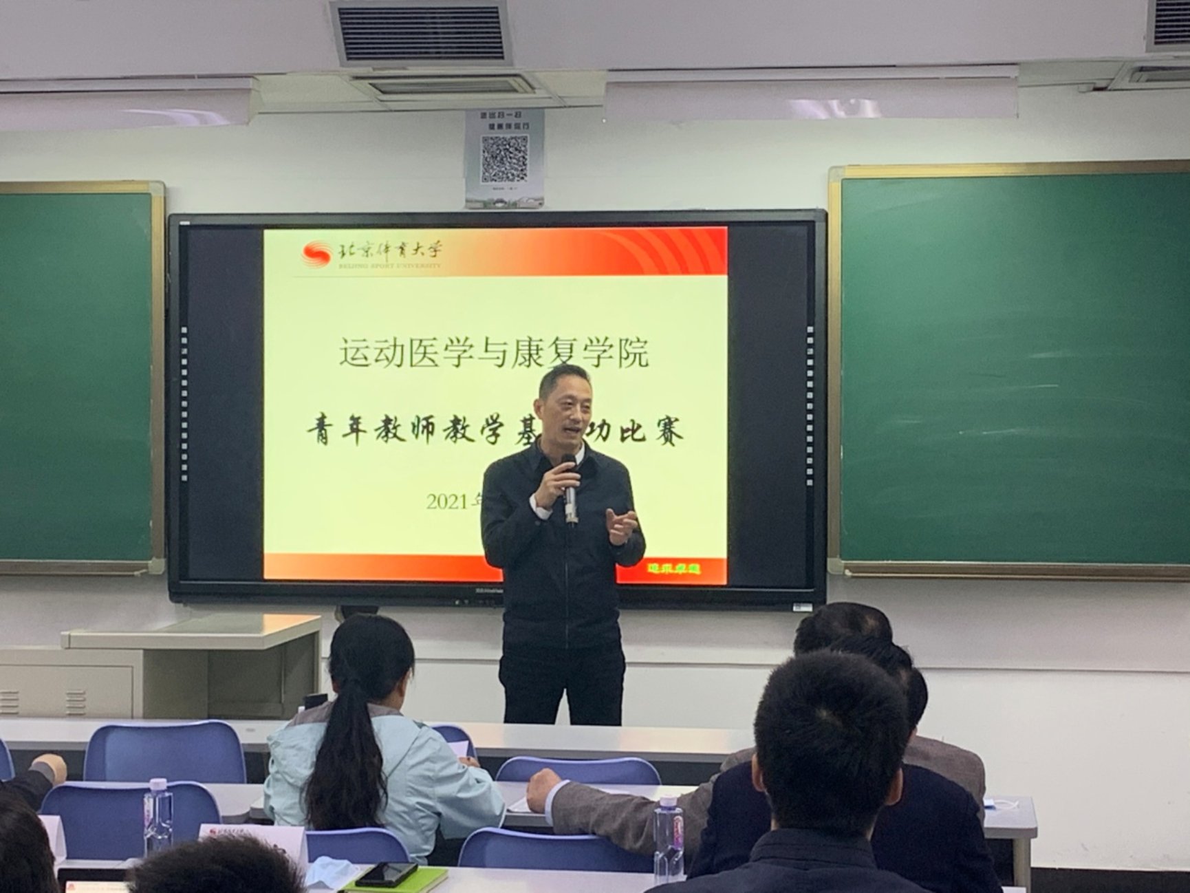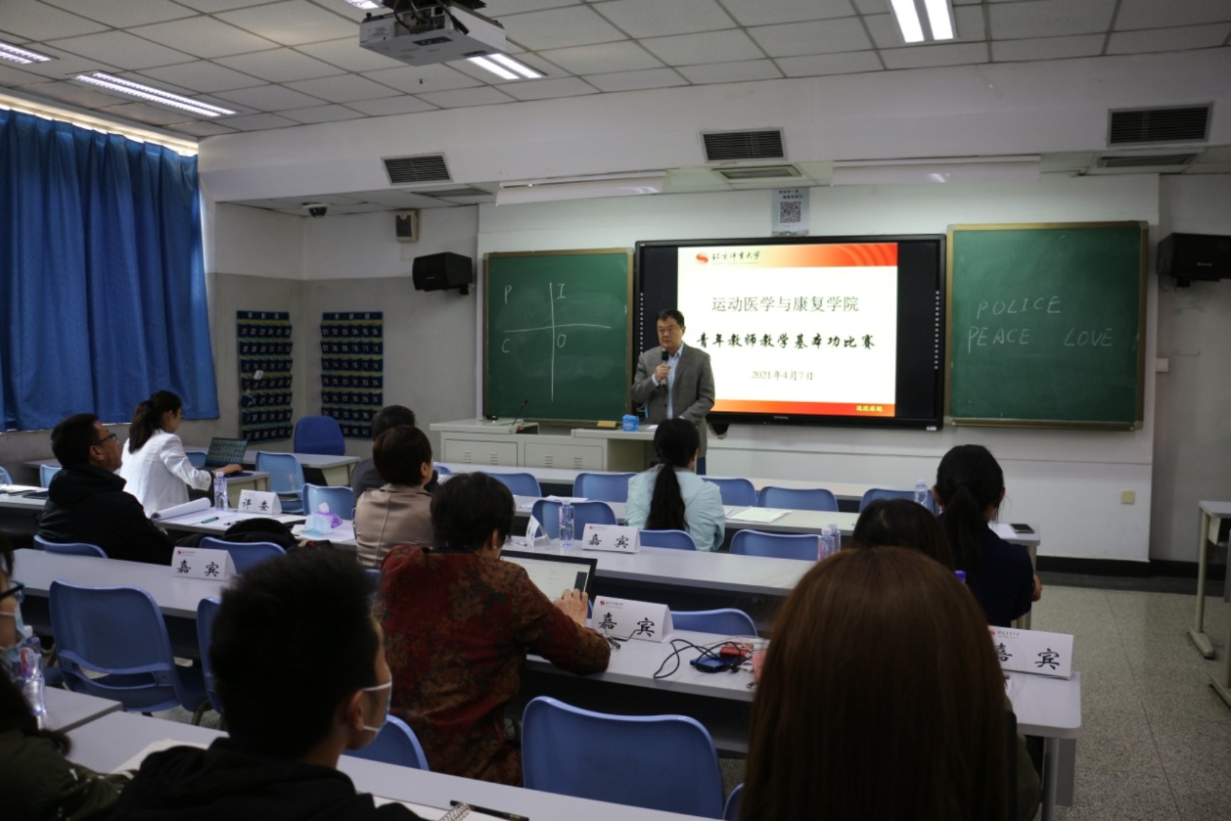 为进一步提高公司广大青年教师的教学能力,使其更好地承担教书育人的重任,公司于2021年4月7日8:30,组织开展了学院“青年教师教学基本功比赛”。学校督导组专家王正珍教授、曾凡星教授,原运动康复系主任王安利教授,运动医学教研室主任王艳教授、运动康复教研室侯世伦教授担任此次比赛的评委,教务处处长章朝晖、人事处处长孙震、工会委员会办公室副主任王鹏、学院全体教师及部分员工代表到现场参会。