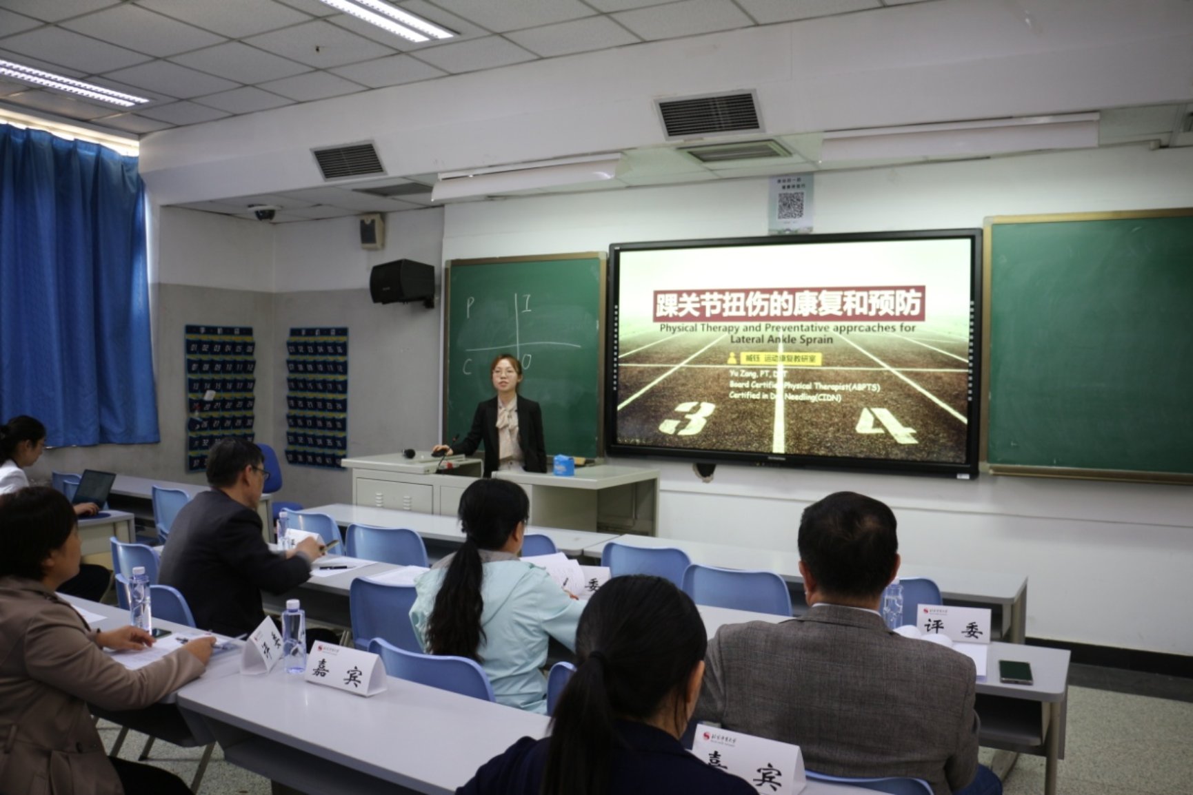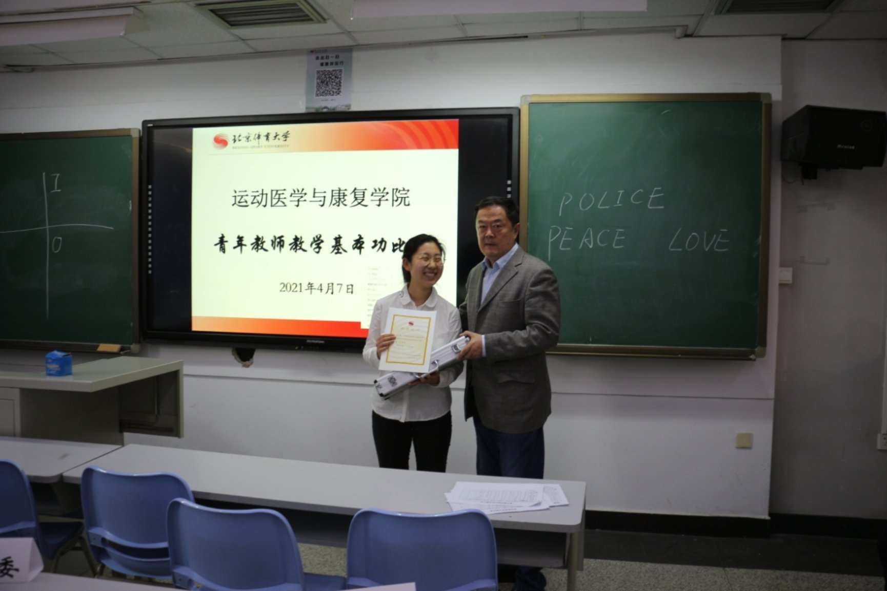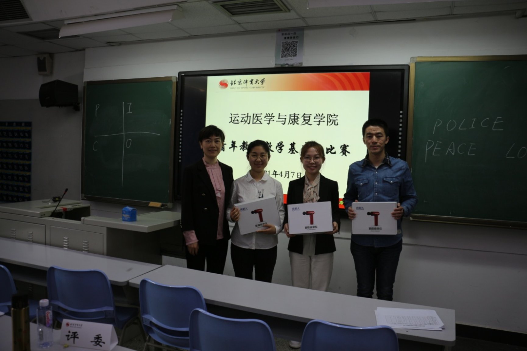 为进一步提高公司广大青年教师的教学能力,使其更好地承担教书育人的重任,公司于2021年4月7日8:30,组织开展了学院“青年教师教学基本功比赛”。学校督导组专家王正珍教授、曾凡星教授,原运动康复系主任王安利教授,运动医学教研室主任王艳教授、运动康复教研室侯世伦教授担任此次比赛的评委,教务处处长章朝晖、人事处处长孙震、工会委员会办公室副主任王鹏、学院全体教师及部分员工代表到现场参会。