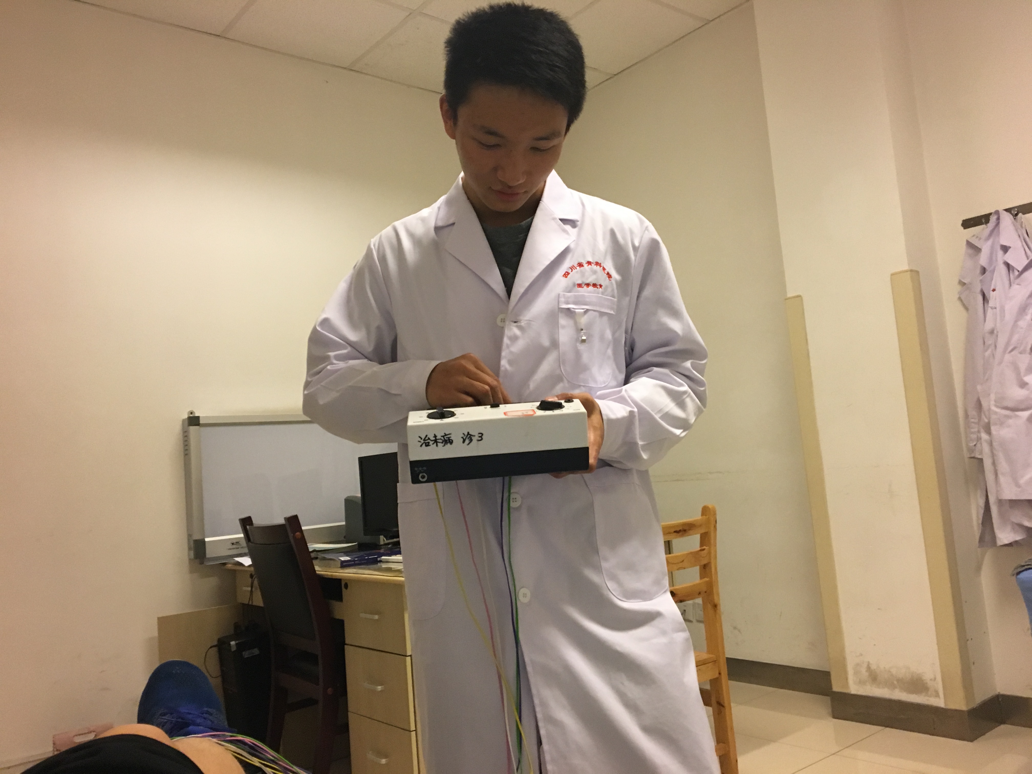 通过这个月的实习,同学们逐渐熟悉了医院康复科内各种仪器的使用方法,同时也在老师的指导下进行了手法操作,同学们的专业技术有所提高。3月20日,张奇瑞同学被分配到中医康复科,老师要求其掌握几个基本穴位的治疗效果,以及各关节部位损伤的一般痛点位置,这让他对手法治疗有了新的认识。在观看老师为病人治疗的过程中,同学们将所学习到的专业知识得以验证,进一步提高了专业技能。