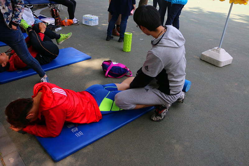 “康复小站”由运动康复教研室的白震民老师和侯世伦老师指导,运动康复系研究生以及各年级同学和员工会康复小分队组成。其目的包括:为在场拼搏的运动员们提供及时的物理治疗,以及赛前的补水补糖、热身指导等。