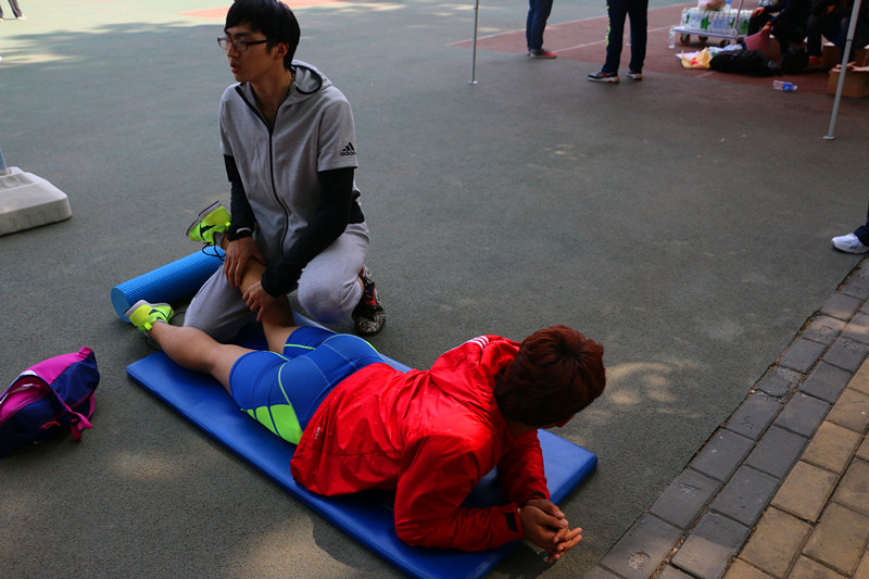 在“康复小站”的专业指导下,今天的比赛鲜有受伤的运动员,热心的同学们也积极地做好了给运动员补水补糖的工作,以确保运动员们发挥出最佳水平。