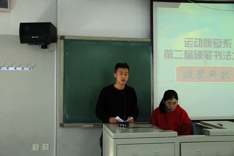 首先,主持人对出席本次颁奖仪式的嘉宾进行了介绍,在对上一周开展的“康复书锦绣,时间翰墨香”运动康复系第二届硬笔书法大赛进行了简短的概括后,本次颁奖仪式正式开始。
