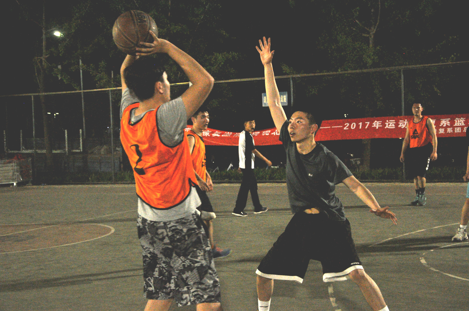 2017年5月10日晚7:30,运动康复系篮球联赛第三场正式开始。A组和B组最后一场小组赛分别在篮球外场11号场和12号场准时开始。对阵双方分别是2013级男篮 VS 研究生男篮以及2014级男篮 VS 2015级男篮。