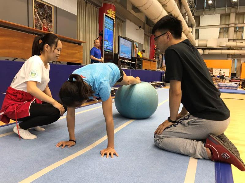 在蹦床队,转眼间,一个月的时间过去了。同学们已经熟悉了自己的工作任务,在师兄的带领下,工作之余也会一起讨论病例,商讨治疗方法。由于接下来有比赛,队员们都很快的进入备战状态。训练的热情十分高亢。当然,伤病也是不可避免的。同学们发现,多数损伤集中在腰,膝和踝关节。在本月,有幸见到专家会诊治疗,在治疗后,专家建议尽量不要吹冷空调、洗冷水澡等,注意休息和调整运动量,防止复发。