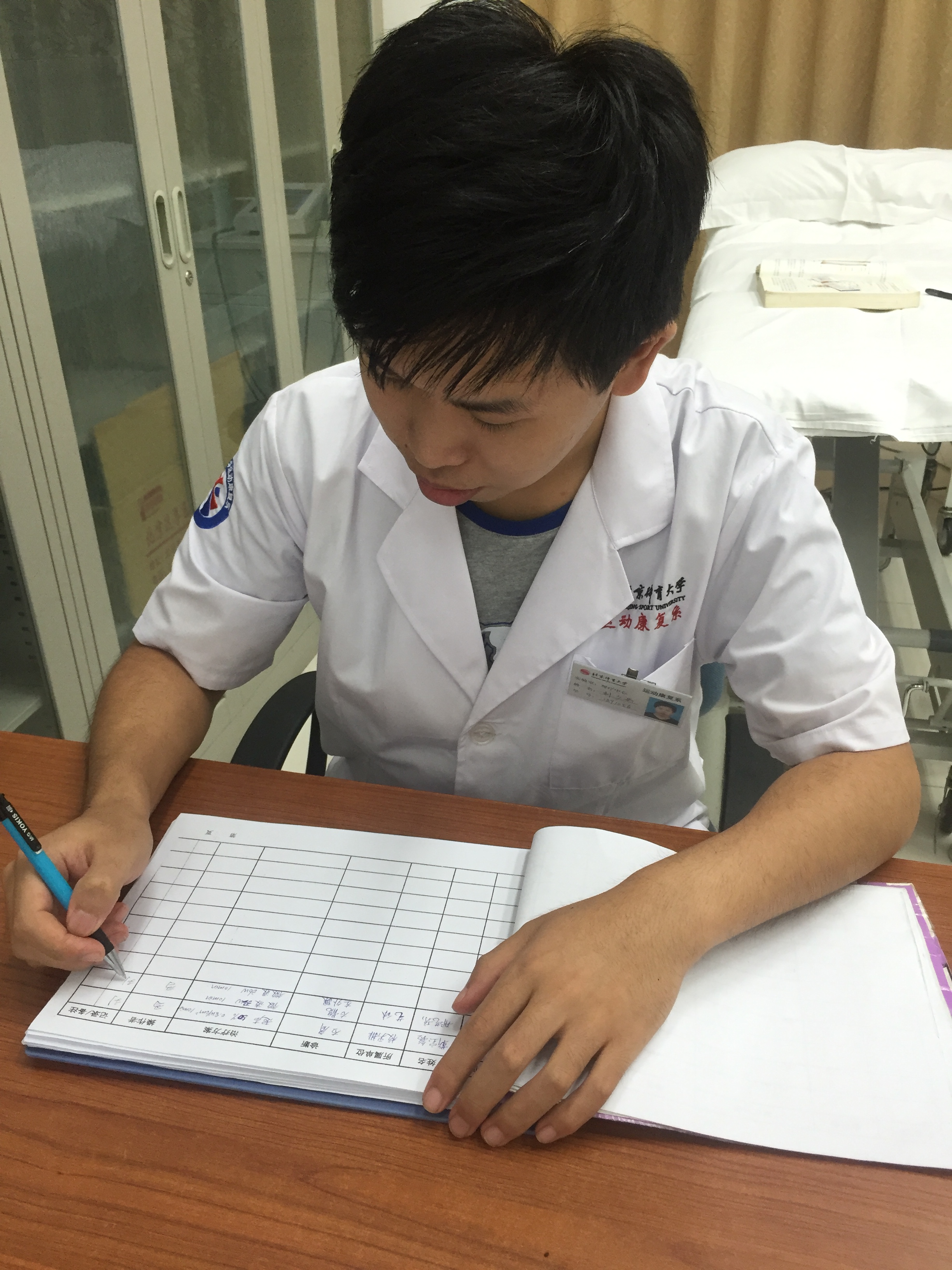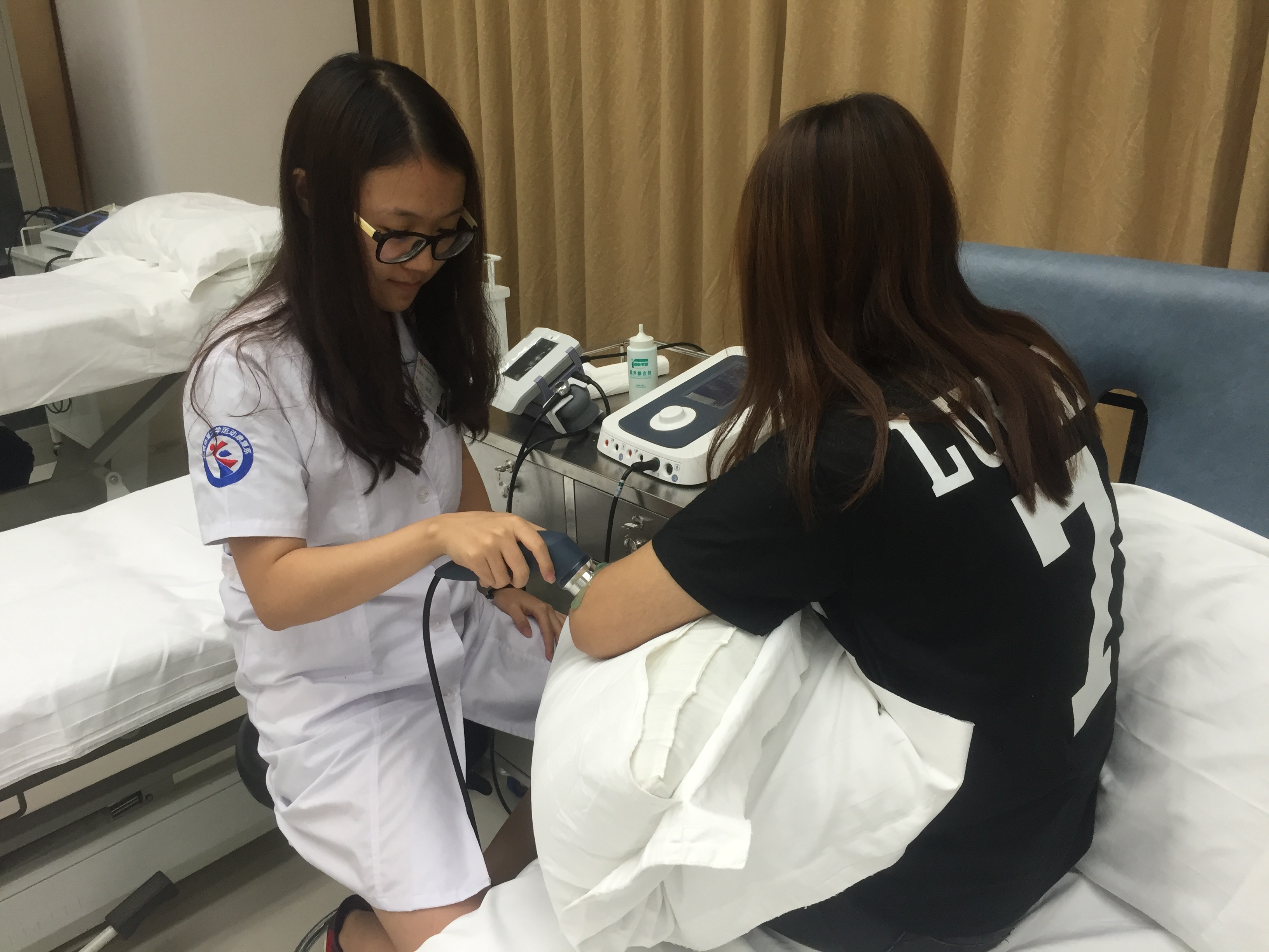 八月底,理疗中心组织了9名实习生的专业技能考试,考试的形式为:实习生通过问诊、查体做出初步诊断,选择使用理疗仪器,以及各种细节的考察。之后老师做出点评,指出同学们的不足之处,提高了同学们对常见运动损伤的判断及处理能力。
