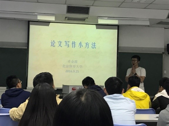 2016年9月28日,我系2016级研究生在203教室举办新生教育系列活动,本次活动邀请博士卓金源师兄和谢永民师兄进行硕士论文写作技巧分析交流专题讲解分析。