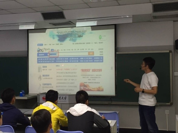 卓师兄首先介绍了如何去搜集和利用参考文献,教同学们如何巧妙的利用身边的网络资源进行资源收集。其次,谢永民师兄分享了做好开题工作的经验,如何准确的为自己接下来的论文写作做好框架。会场上,新生们积极提问,现场师兄立刻给予解答。最后愉快的交流过后师兄分享了他们的“曲折”经历,向大家介绍如何从论文开题到发表进行合理安排。