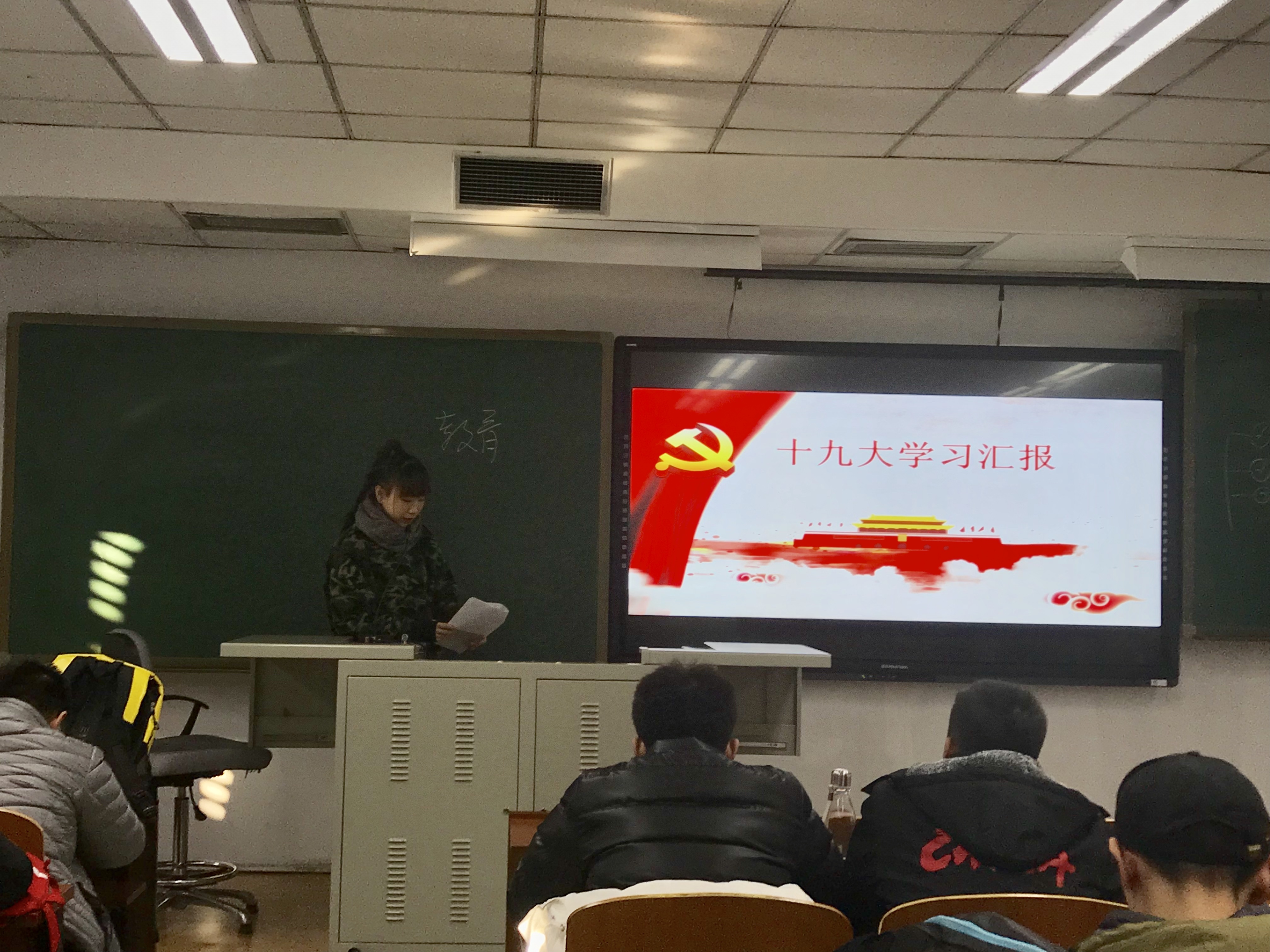 之后,四名参加党课培训班的同学分享了学习十九大的心得体会,其中朱金子同学强调了“学懂,弄通,做实”的重要性,国家奖学金获得者何佳玥同学和英语提高班的岑宇凡同学以“不忘初心,争做优秀青年”为主题分享了自己的学习体会。