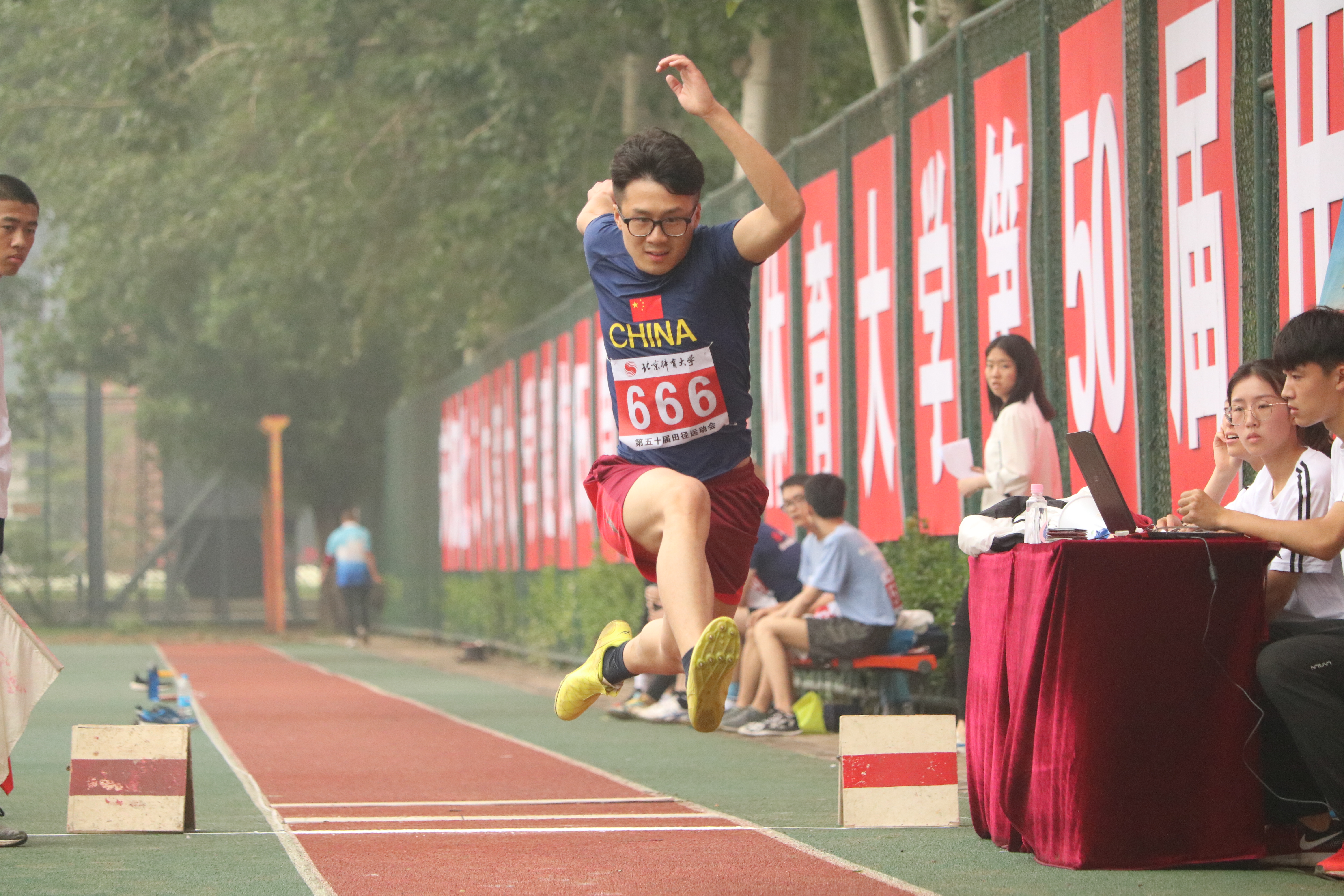 2018年5月16日上午,男子丙组三级跳决赛在英东田径场南侧进行。