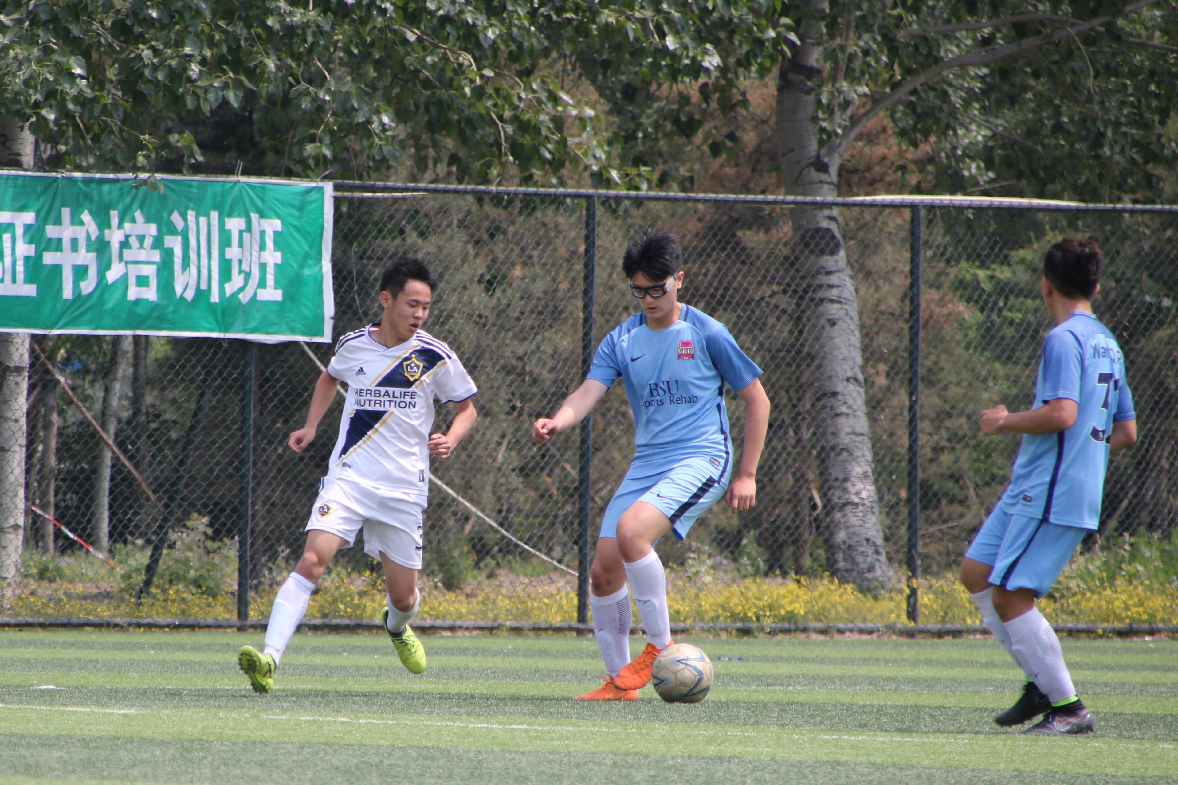 下半场第十分钟,新传男足边路球员独自带球狂奔半场后送出传中球,新传男足中锋力压康复男足防守球员头球攻门。门将张阳朔虽正确预判方向做出扑救,怎奈皮球在击地之后弹入球门,新传男足以2比0领先。