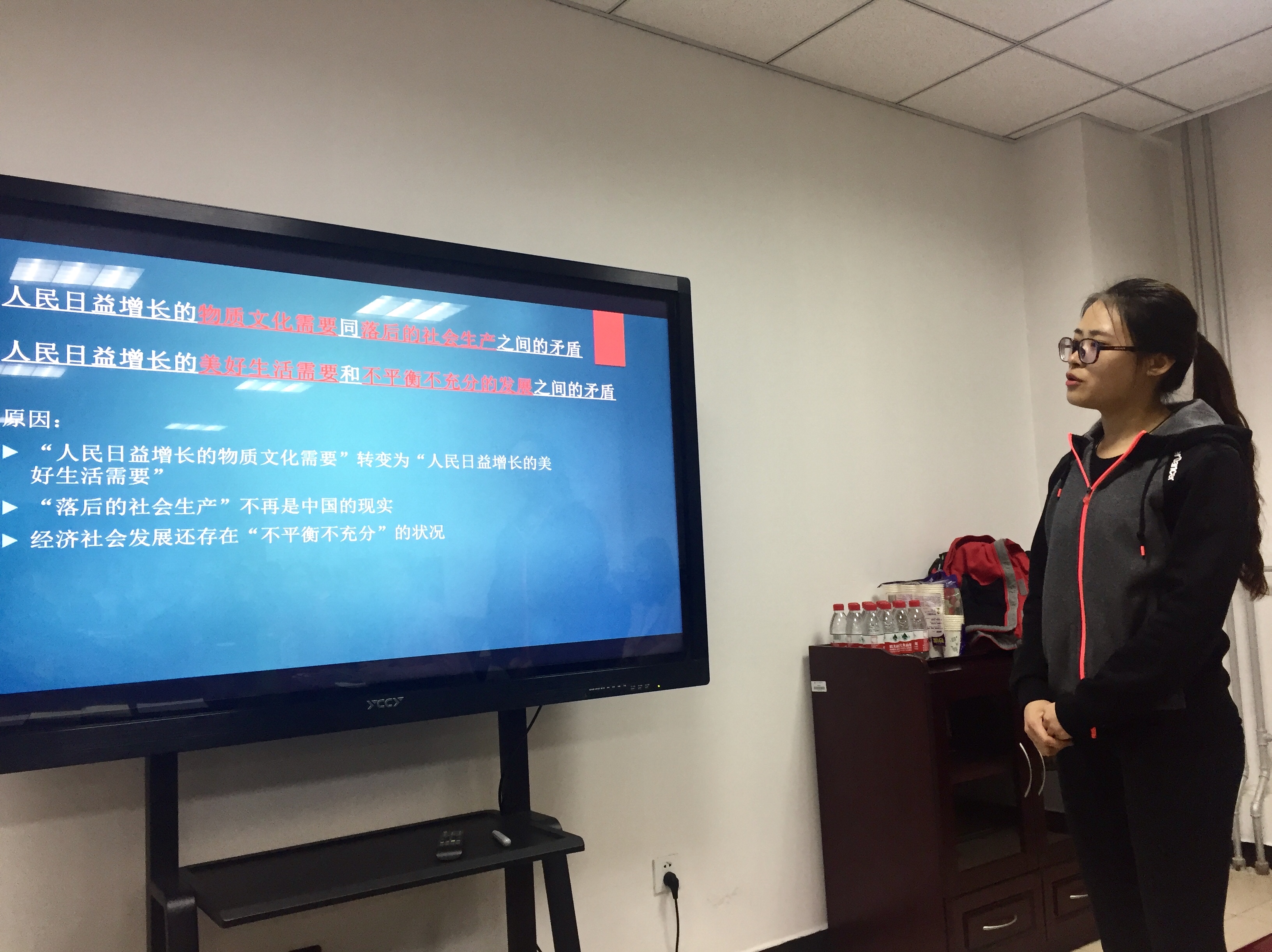 支部按专业方向分成体育保健、运动康复、体能训练三个小组,会议前各小组进行了充分的学习和讨论。会上,三个小组分别就学习讨论情况进行了汇报。运动康复小组谈到:我国社会主义主要矛盾由人民日益增长的物质文化需要同落后的社会生产之间的矛盾转变为人民日益增长的美好生活需要和不平衡不充分的发展之间的矛盾,是关乎全局的历史性变化,,但没有改变我们对我国社会主义所处历史阶段的判断,我国仍处于并将长期处于社会主义初级阶段的基本国情没有变,我国是世界最大发展中国家的国际地位没有变。体能小组谈到:中国体育未来发展的机遇与挑战以及老员工面临的主要任务,同时谈到了全力办好2022北京冬奥会中国所做的准备,这一切激励着我们学好专业知识,为投身社会主义建设做好充分的准备。体育保健小组谈到:全面建成小康社会、脱贫攻坚举措给老百姓生活带来的巨大变化,广大人民群众从中受益良多。