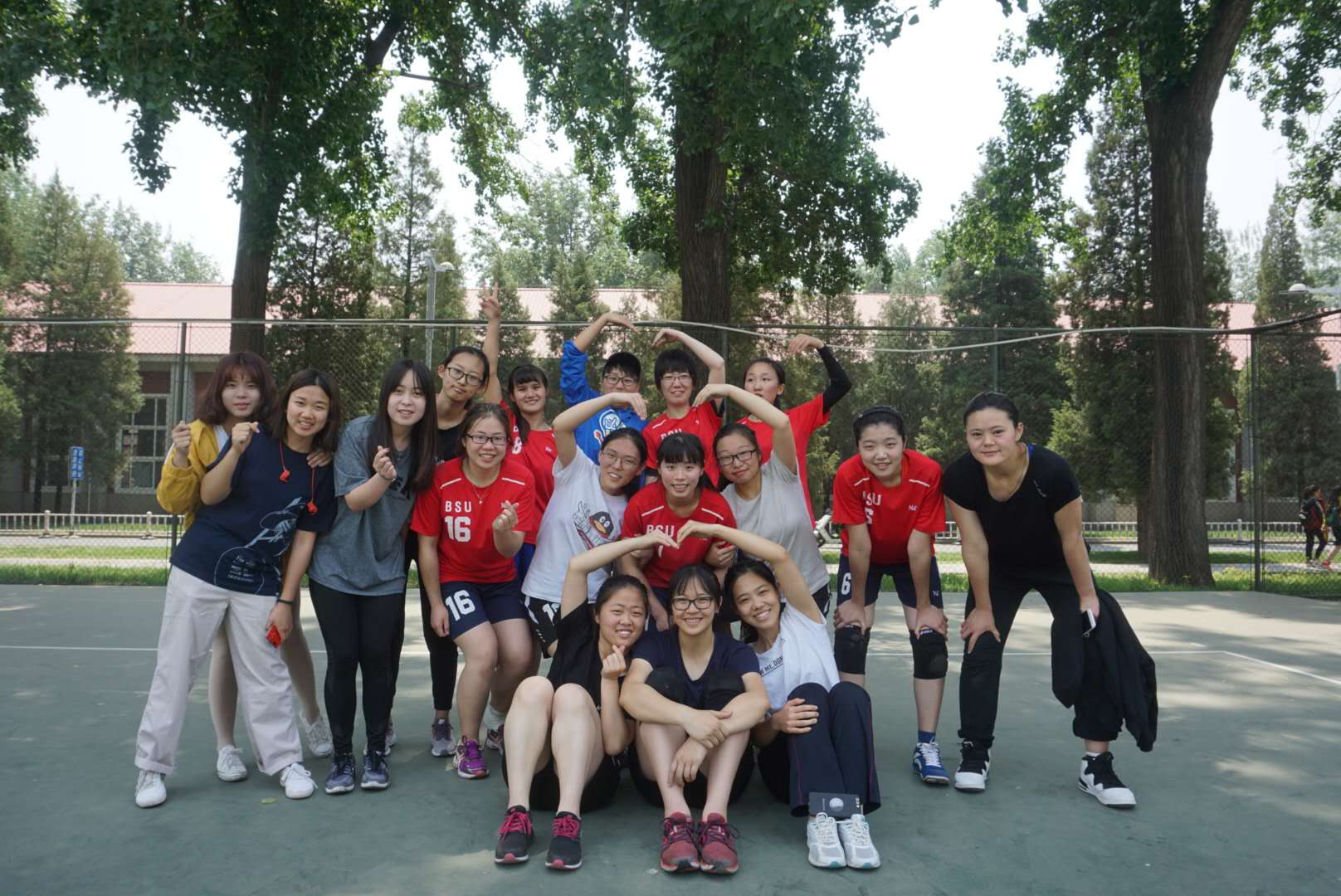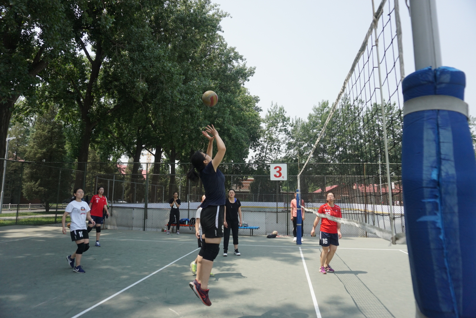 在男排进行着如火如荼的激情对决时,康复女排对阵管院女排的女子组决赛在2号场进行着。面对强劲的对手,康复女排毫不懈怠,早早来到球场进行热身运动。