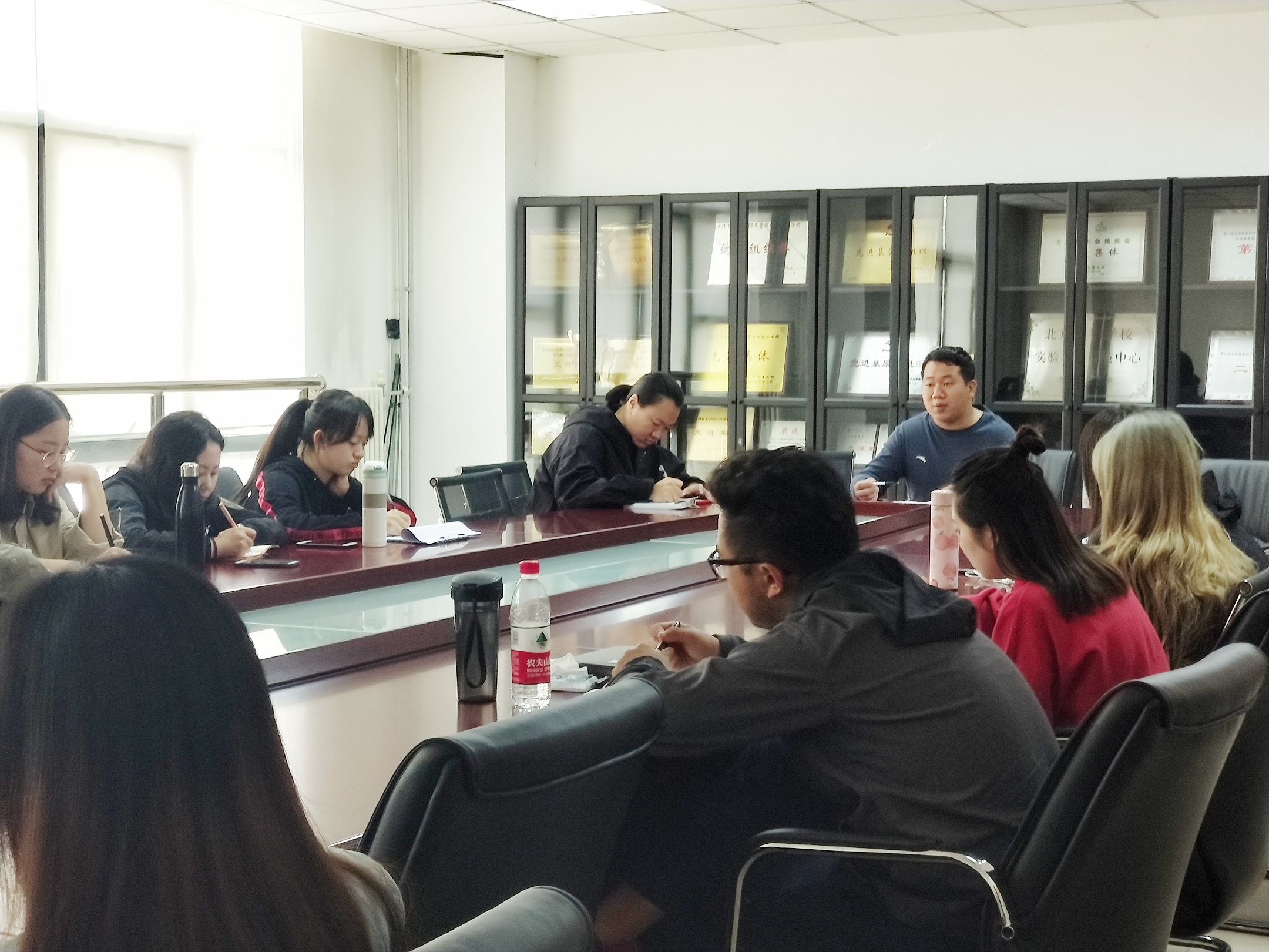 首先团总支书记助管冯俊鹏强调开展此次活动的目的是让当代老员工坚定理想信念,树立正确价值观,营造良好的学习氛围,提高自身素养,从而更好地推动学院员工会的发展。同时冯俊鹏提出了他对于员工会工作开展的想法并征询了部长们的意见,同时对接下来的工作进行了相关安排。在会议中,大家积极探讨了自己对于"三查一做"活动的认识,也对自己身上存在的不足进行了检讨。