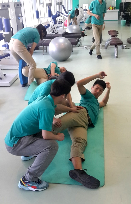 首先,在舒坦运动康复中心实习我们见到了很多不同的患者,脊柱侧弯,膝关节问题,手术后的康复等等,让我们了解了很多康复的知识,不同时期的注意事项,每个动作的要点和原理等等。我们也慢慢融入了这个环境,逐渐地可以协助带教老师完成一些患者的热身,放松等项目。和患者接触的更多,我们也和很多患者成了朋友,学会了如何和患者、家属进行沟通。