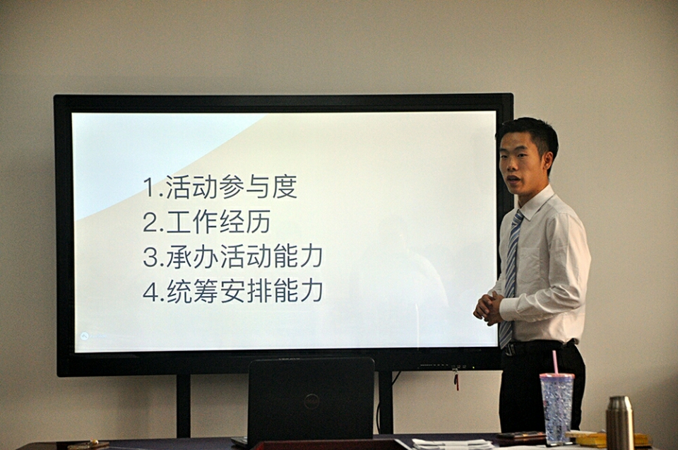 会议开始,第十届团总支员工会主席侯榕芳首先做了员工会工作报告。工作报告从员工会的基础建设和校园活动的开展出发,侯榕芳主席对一年以来的工作进行了总结,对工作中出现的一些不足进行了反思,并对努力工作了一年的全体员工会成员表示感谢。在白玉茗老师强调了投票规则和投票权利后,换届选举开始。本届换届选举大会按照既定宣讲顺序进行宣讲,每一部门的候选人宣讲结束后,老师根据个人宣讲内容及表现对候选人进行提问,换届选举投票团进行现场投票。本次换届选举投票团由团总支书记白玉茗老师,2014、2016级辅导员韩万滨老师,团总支副书记王馨莹,校员工会副主席施艺涛,第十届团总支员工会主席团、各部门部长和副部长及2015、2016级20名非员工会成员的员工干部组成。