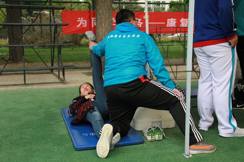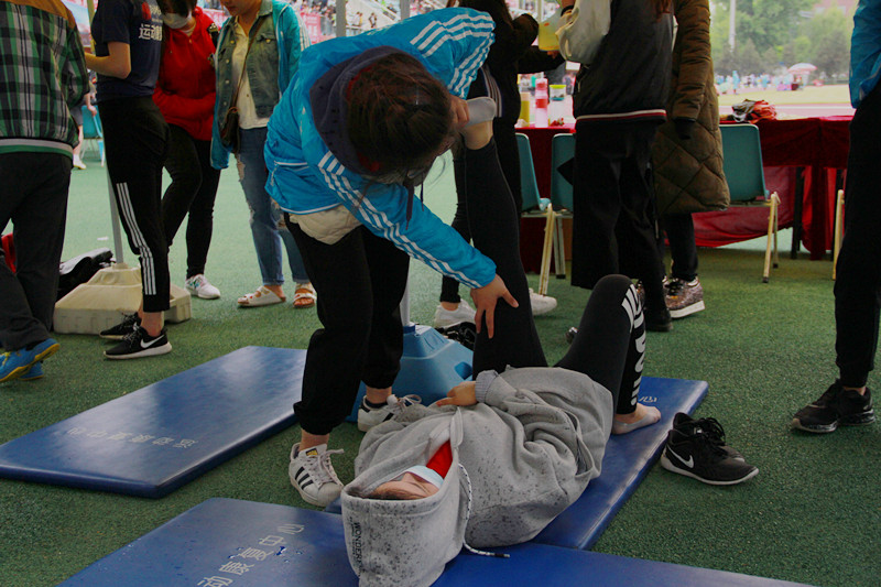 今年的康复小站活动与运动会同时开展,运动康复系的志愿者同学们和校医院的医生们一起组成了康复小站。“康复小站”其目的包括:为在场拼搏的运动员们提供及时的物理治疗,以及赛前的补水补糖、热身指导等。