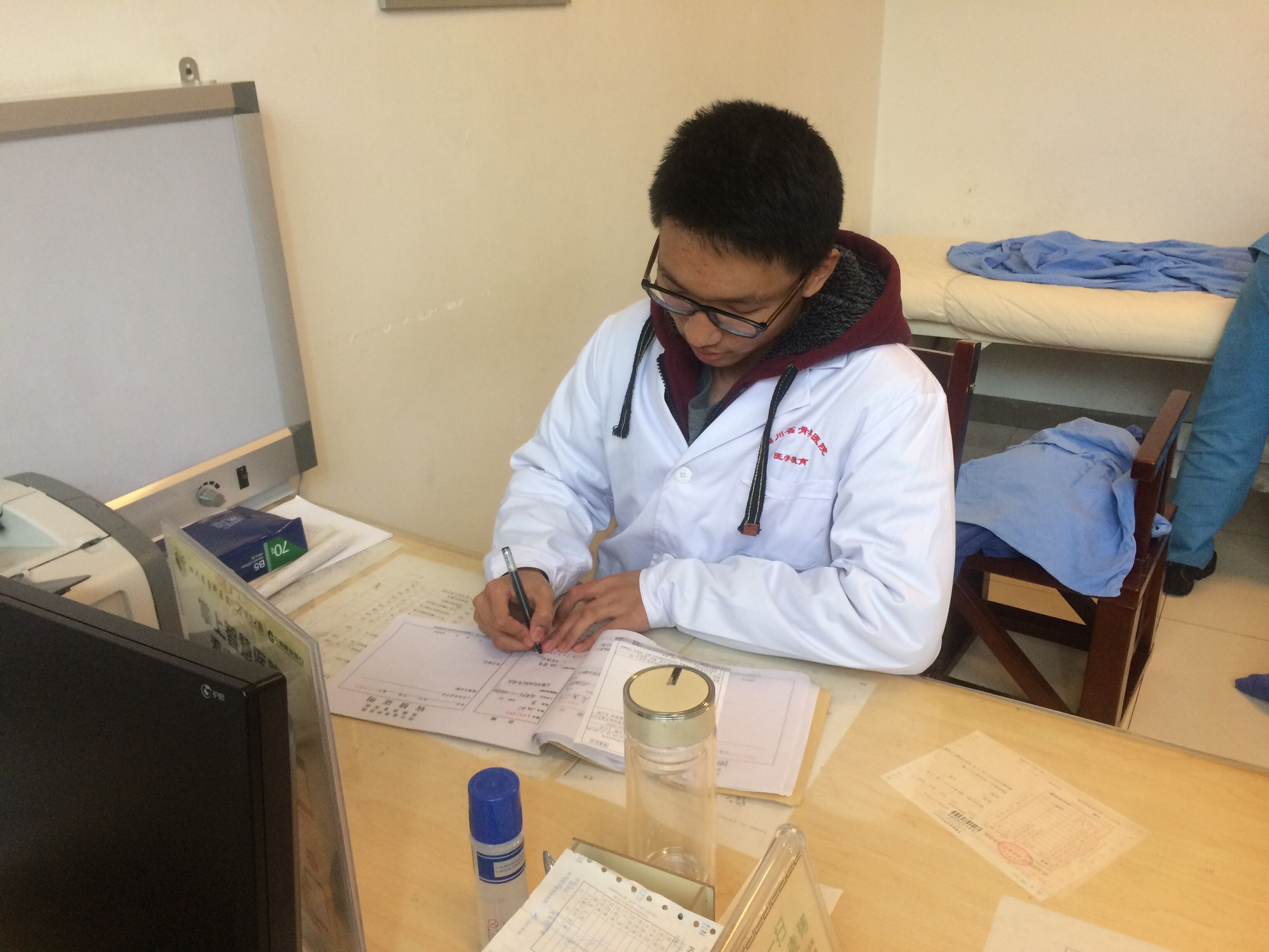 万物生长的三月,同学们也在门诊实习中一点一点成长着,医院的治未病中心每天早上都有很多患者来就诊,同学们分工明确,谁叫号,谁写病历,谁开假条,谁告诉病人外敷药的使用方法等等工作都完成的很好,例如李泽峰同学的任务是写病历,同时需要写诊断开处方,这是他在学校学习中是从来没有过的,所以对他来说这是一个具有挑战性的任务,但通过慢慢地学习之后变得熟练不少,这对他的自信心和能力都是一个很大的提升。同学们通过紧密的配合和熟练的操作,圆满完成了这段时间门诊中的复杂工作。同时也加深了对专业理论知识的了解。