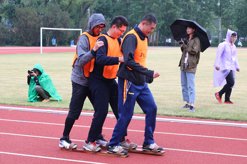 首先进行的是男子和女子的100米预赛,张鹏和杨二伟分别以预赛11’95”和11’81”的成绩进入决赛;刘倩楠以14’51”的成绩进入决赛,而柏慧以15’81”的成绩遗憾出局。接下来进行的是师生板鞋竞速,我系参加该项目的是苍海书记、韩万滨导员以及王东升;比赛刚开始时,由于场地湿滑,我系参赛选手意外摔跤,但他们并没有气馁,立刻站起来继续比赛,获得了小组第三的成绩。然后进行的是男子和女子的1500米决赛,莫坤明以4’52”65的成绩获得男子组第四名;张晚霞在身体不适的情况下以6’49”64的成绩获得女子组第十名,王珏则以6’34”43的成绩获得第七名。上午最后一个项目是男子和女子400米预赛,甘燎延以54’13的成绩进入决赛,郭盛博以58’58同样进入决赛;李玮以1’31”07的成绩遗憾未能进入决赛,李婵婧以1’20”83的成绩进入决赛。