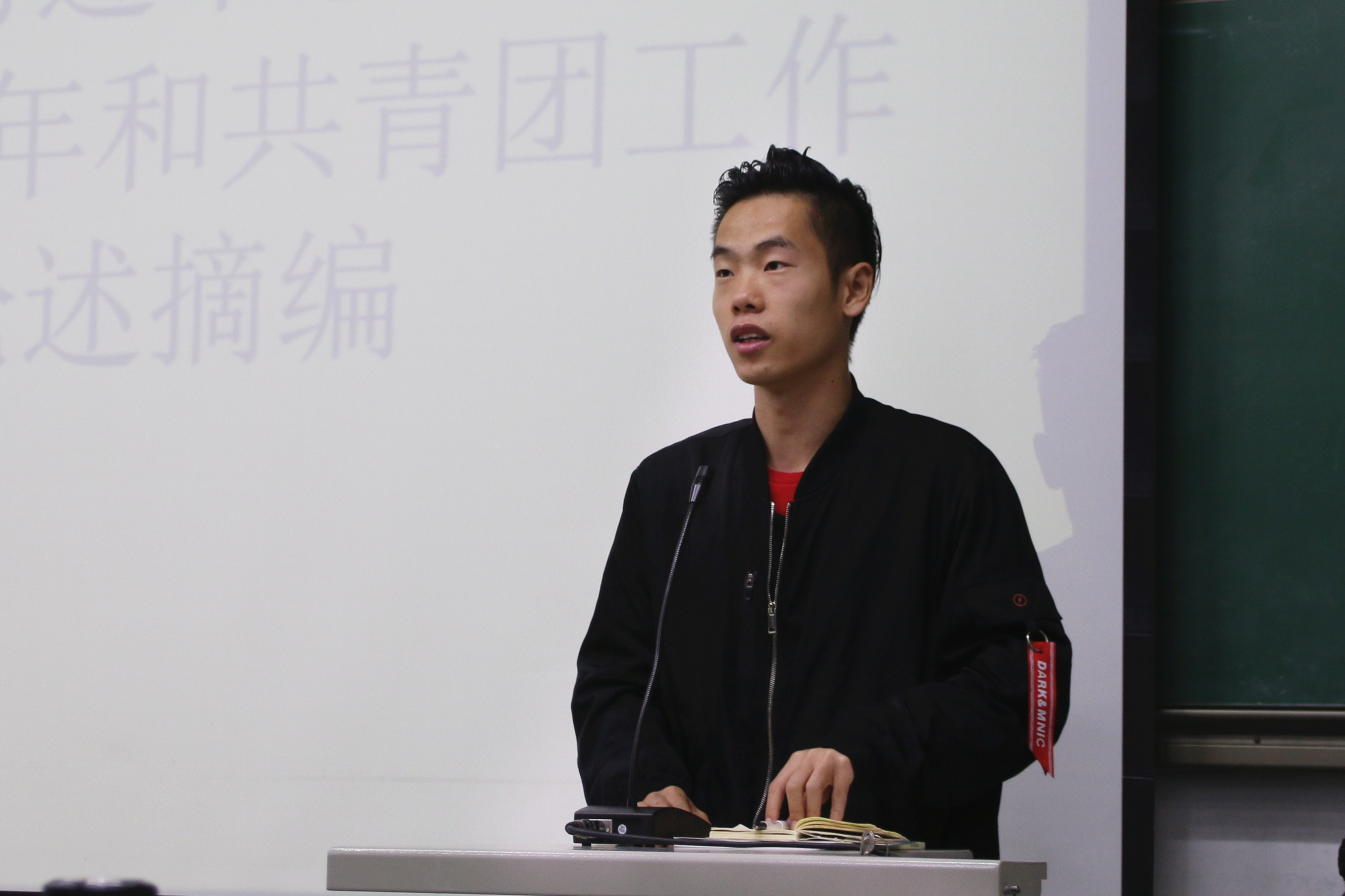接下来主席汪家军讲述了他在学习《习近平总书记关于青少年和共青团工作论述摘编》时的感悟,并教育我们每个人都应该先行一步,多做一层,树立共产主义理想,做好中国特色社会主义道路的建设者和领导者,他希望大家能够在认真学习这本书的同时从其中汲取精神与思想上的养分