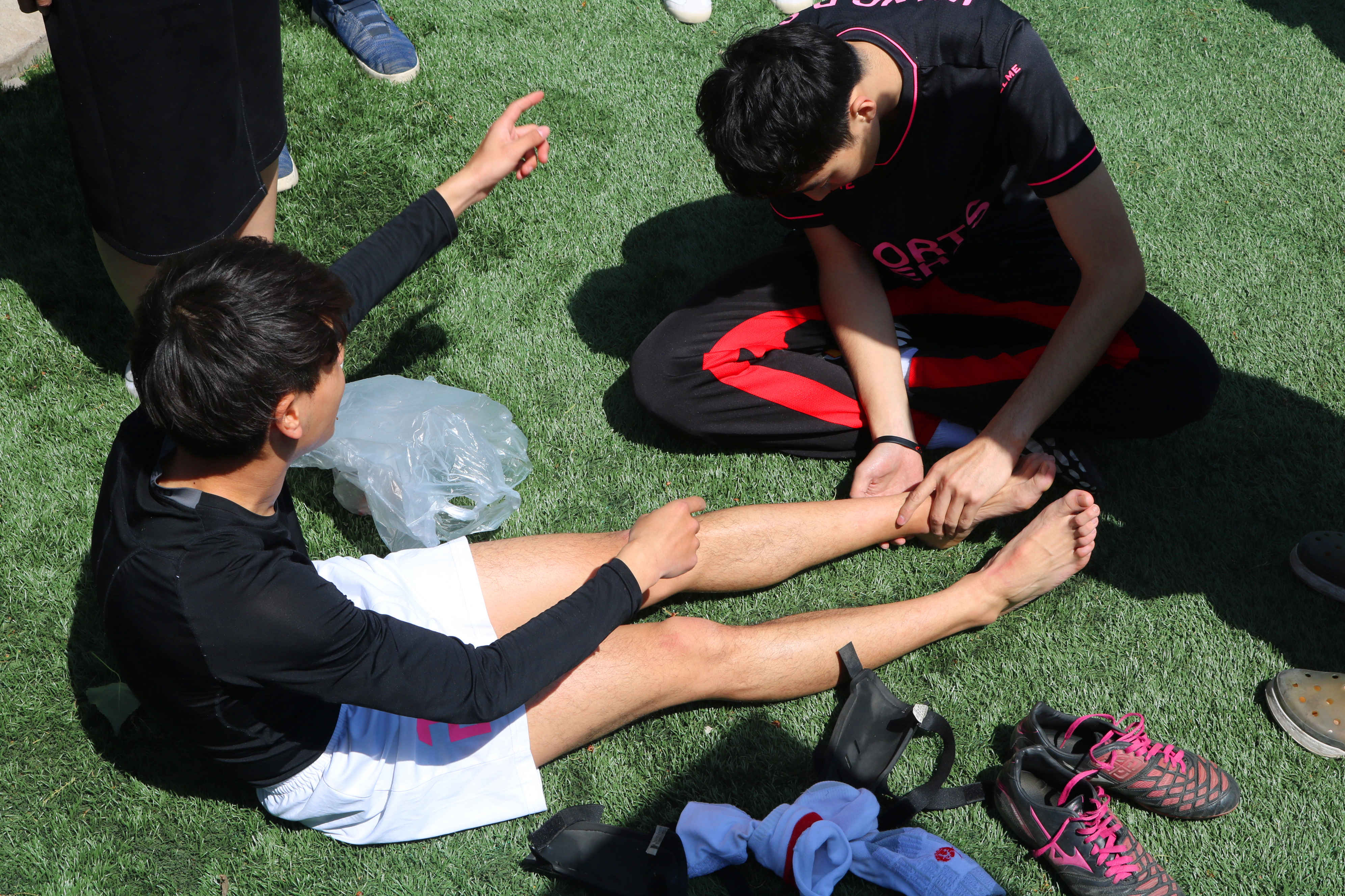 运动康复系足球队赛后并没有立即离开,而是耐心的做了赛后总结。在总结中,康复系队员们反思自我,不断研讨。准备迎接下一场比赛。