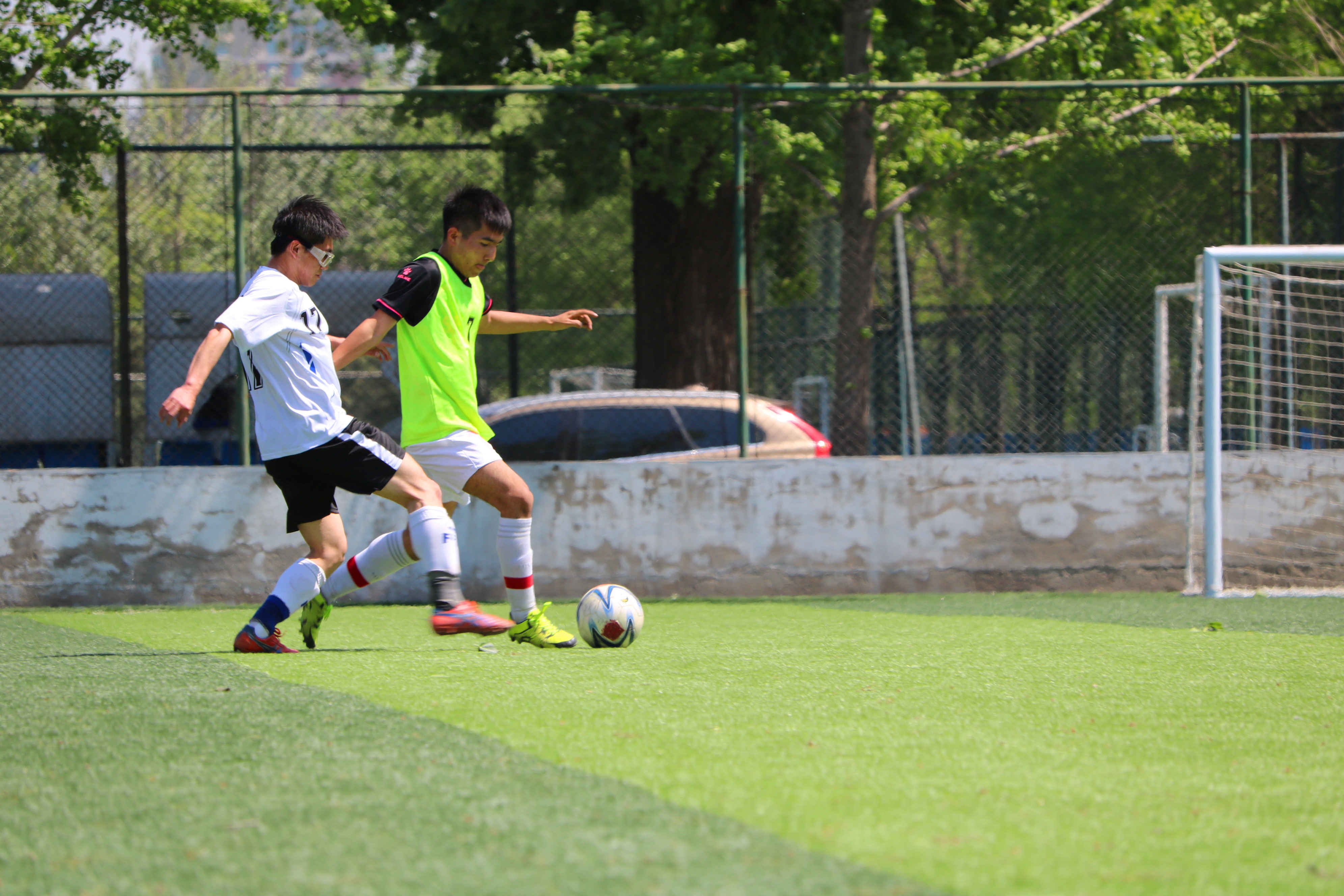 上半场开球之后,管理学院队保持着强势进攻,不断向我方后防线施压,但一直没有实质性突破。开场23分钟,后场拼抢过程中运动康复系26号白长浩腿部受伤遗憾下场。一分钟后,管理学院队22号强势突破后防线,在门前混战中出脚破门,比分被改写为0:1,管院队领先,并保持该比分直到上半场结束。