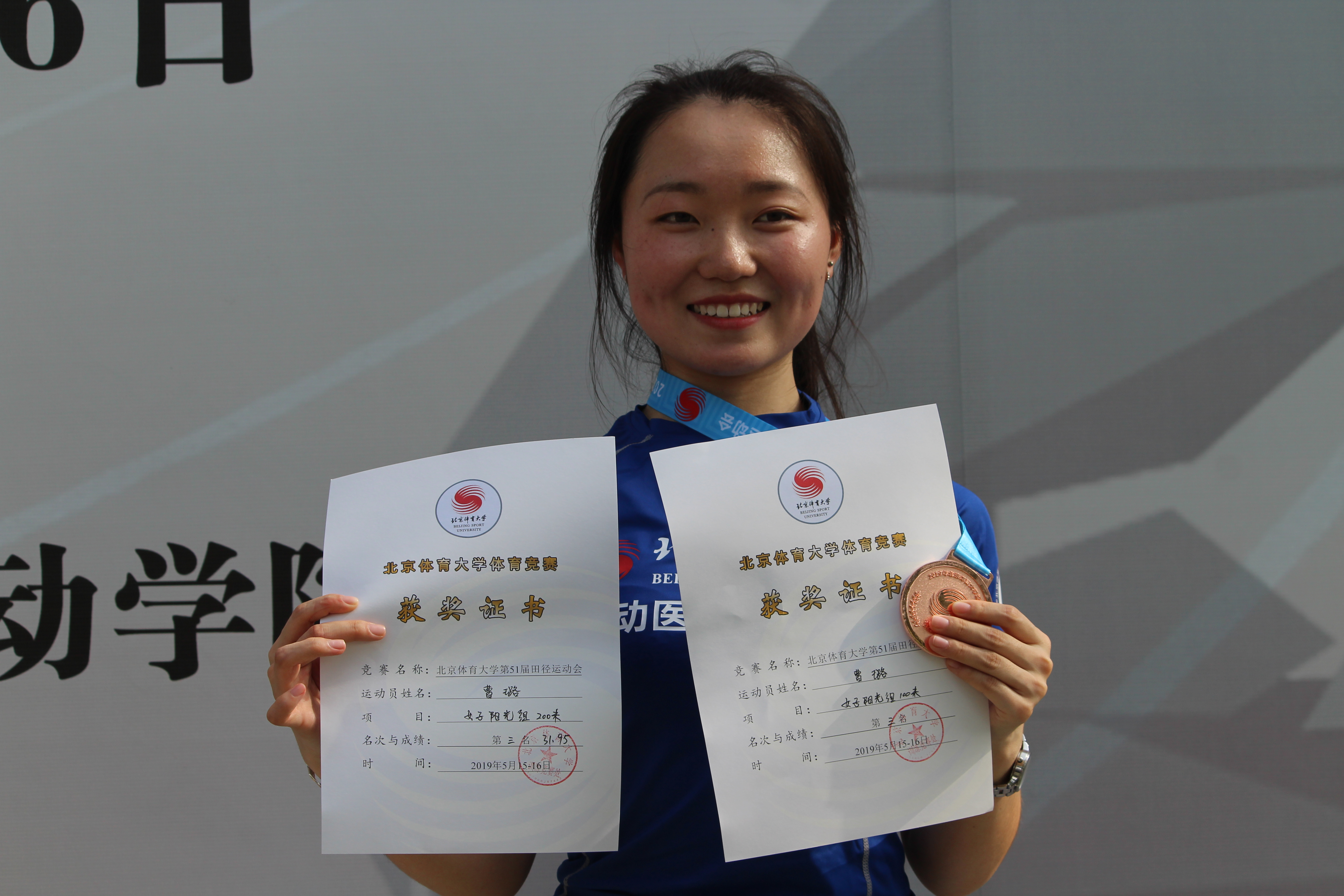 2019年5月16日下午2:15,阳光组女子200米决赛在东田径场进行,代表公司参加比赛的本科2017级曹璐同学奋力拼搏,以31.95秒取得第三名的好成绩。