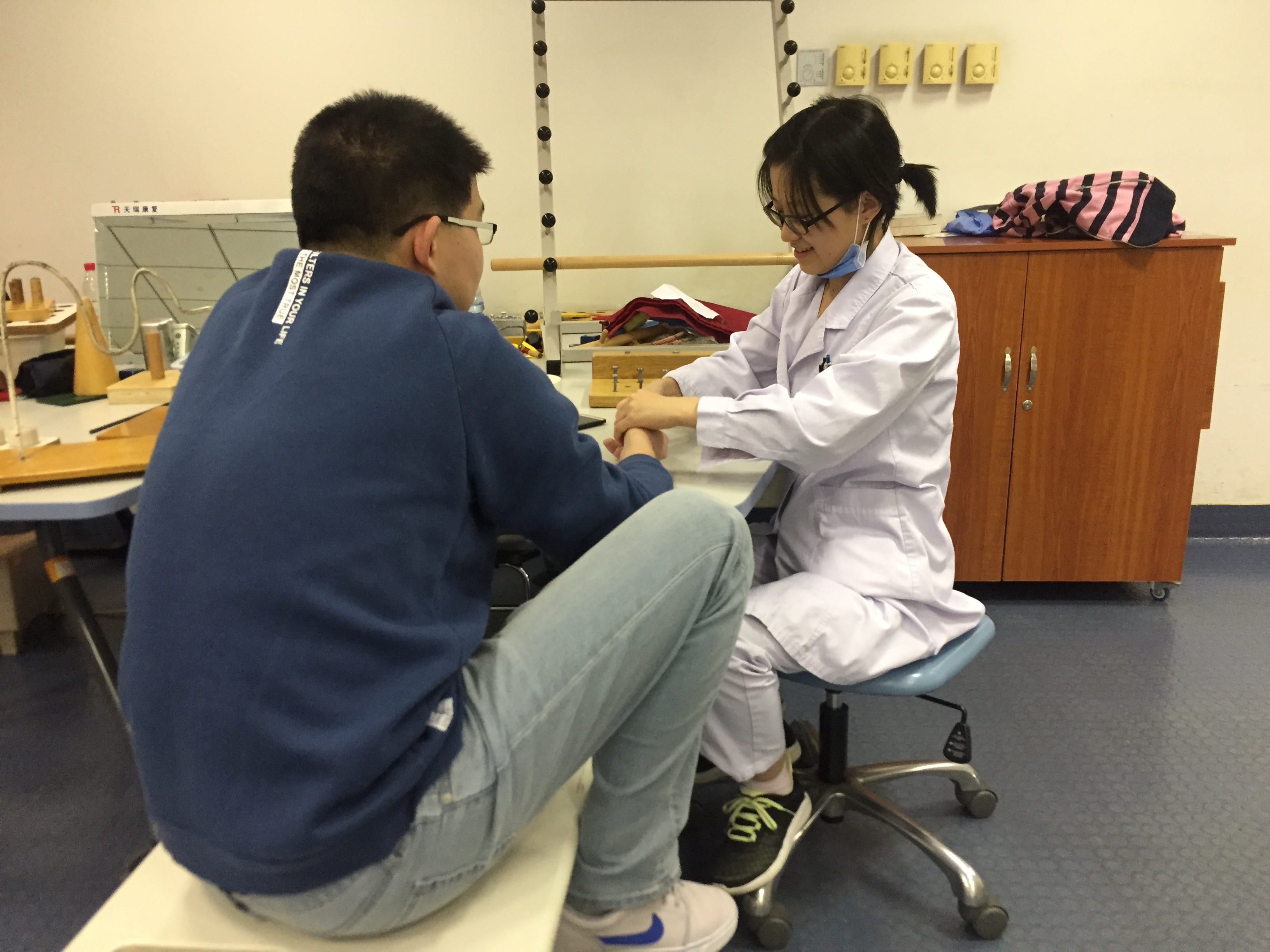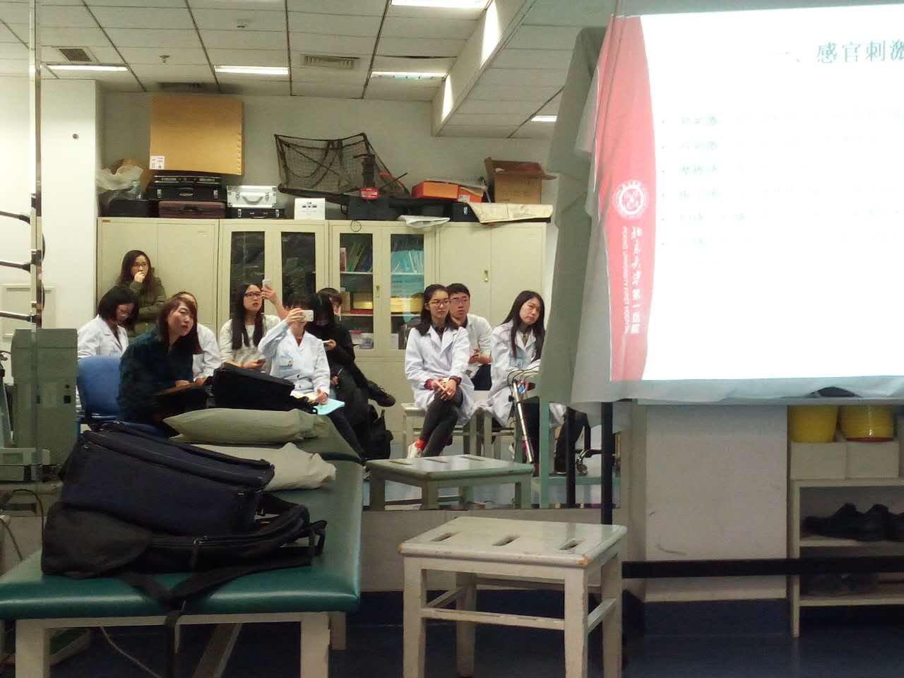 除了专业实践,每周三下午2:00-4:00是理论学习时间。第一堂课由康复医学科主任黄真老师教授,她为同学们讲授康复医学的发展近况和最新的国际观念。第二次课程是由康复医学科的陈浩治疗师为同学们讲授有关言语治疗的吞咽康复相关内容。