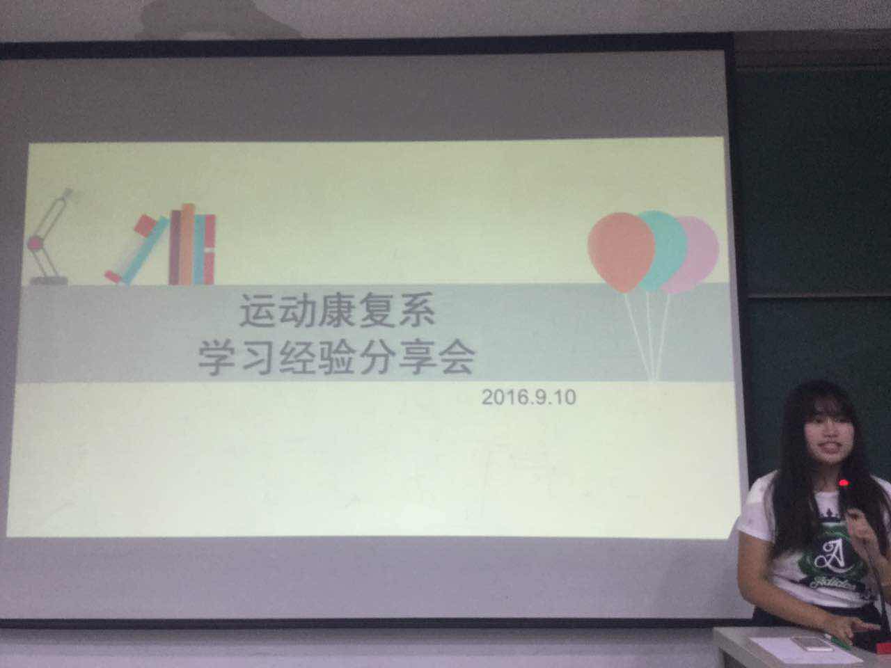 2016年9月10号晚上七点半,运动康复系优秀学习经验交流会在教学楼214顺利举行。出席活动的嘉宾有,2016级研究生李娴都,2016级研究生杨迪,2013级本科生刘静思,2014级本科生侯榕芳以及2015级本科生杨璐铭。
