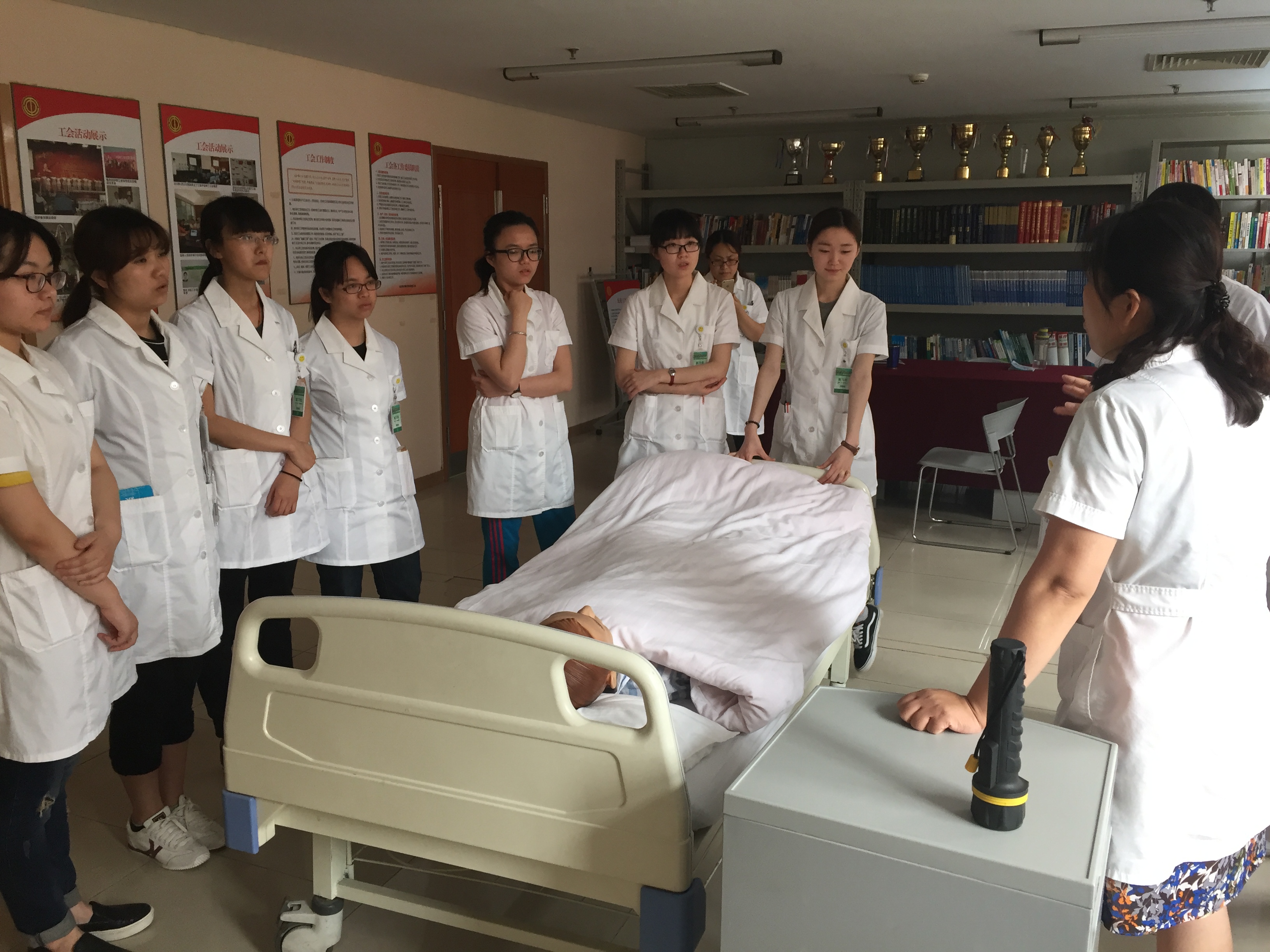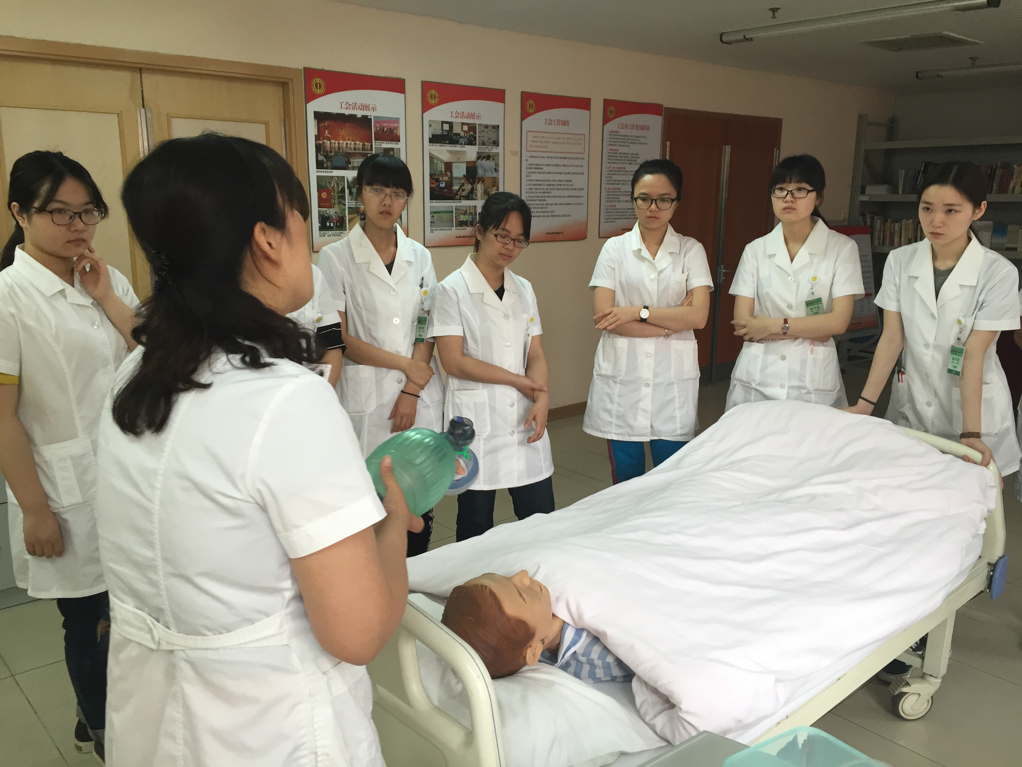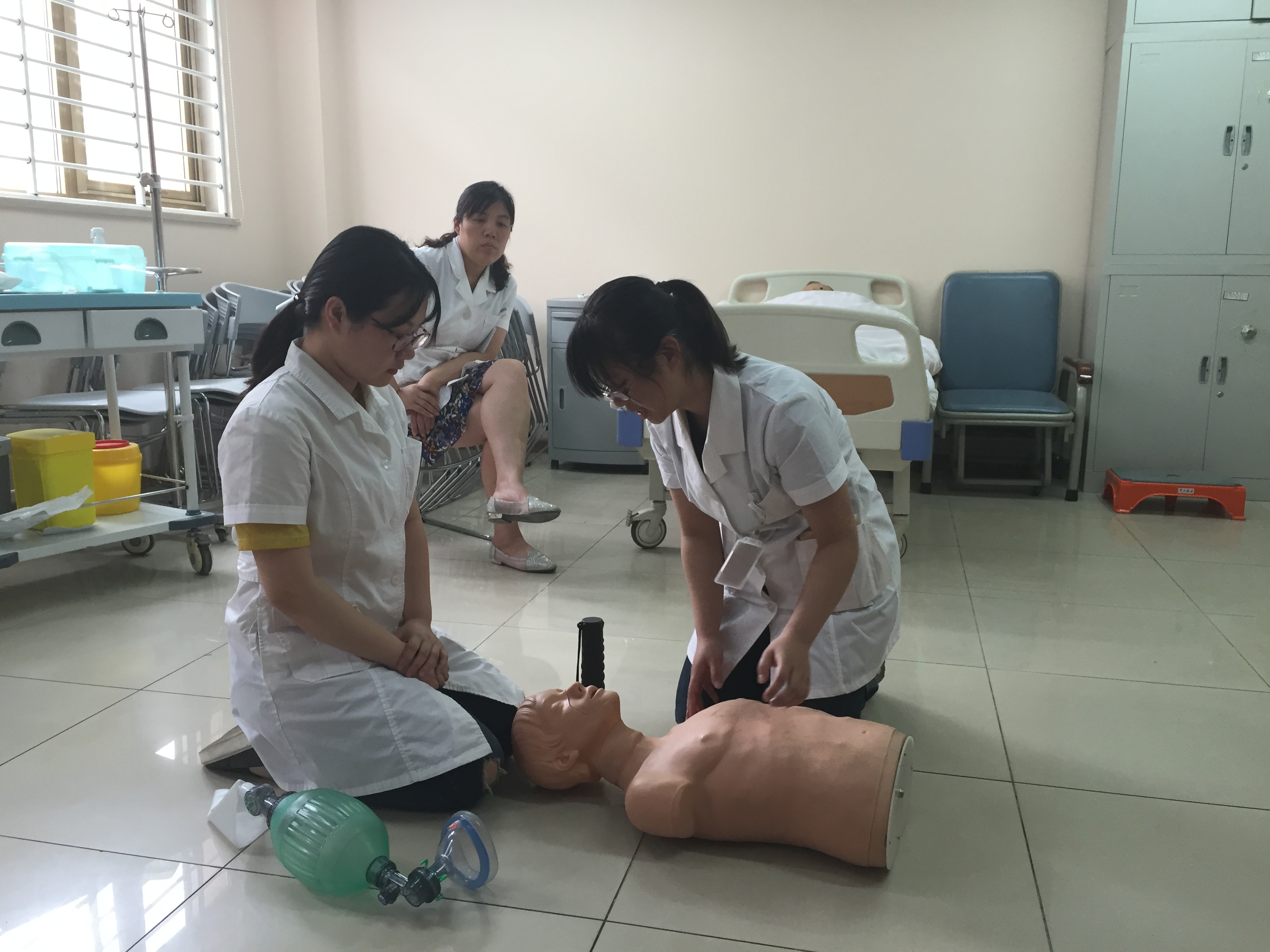 上一周,例行的周五临床教学课程的内容是CPR心肺复苏,由拥有多年ICU急救工作经验的王海蓉主任为我们授课,理论课程以2010版CPR-ECC指南的更新内容为依据,内容比我们以往所学更加细致详尽,这尤其表现在年龄分层和双人配合方面。实际操作部分则先由老师演示过程,而后我们两两结组用假人模拟双人配合下心肺复苏的完整过程。当天下午,老师还带我们来到了急诊科,学习AED的使用方法,并让我们每个人都拿起电极进行操作演示。在王老师的认真负责又专业严谨的指导下,同学们都充分掌握了心肺复苏急救方法。