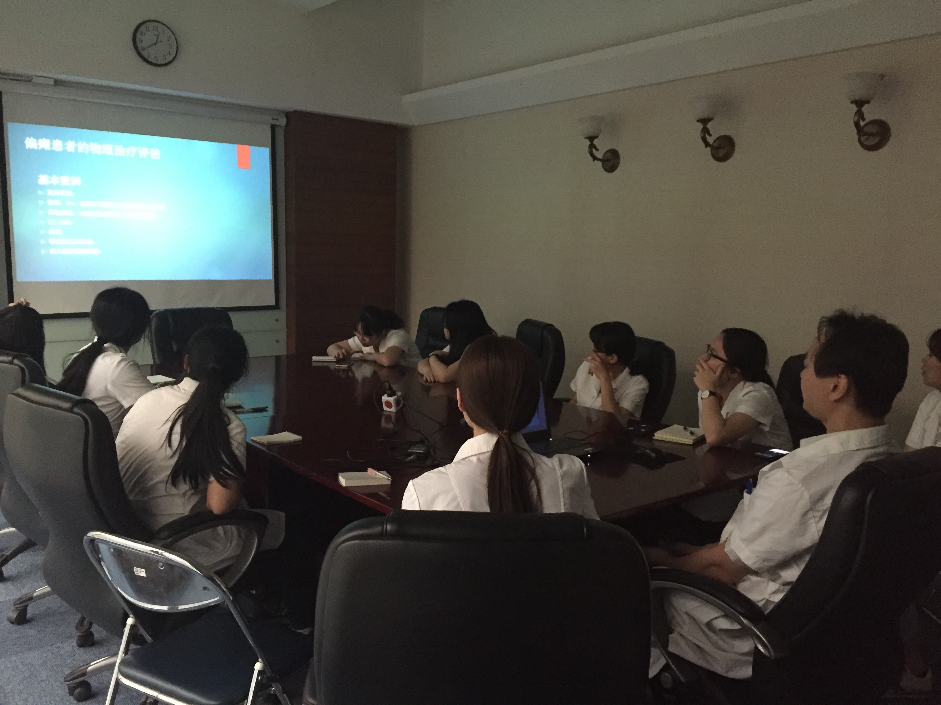 本周的康复中心教学内容是由来自台湾的陈英豪老师为我们讲解偏瘫的康复治疗,主要内容是评估与日常生活动作训练。由于德尔康尼是一家骨科医院,我们很少能接触到在其他医院可能是最常见到的偏瘫患者,因此即便是最容易困倦的午休时间,同学们认真学习的热情也并未有丝毫减退,陈老师的讲解耐心而细致,同学们的聆听亦是专注。