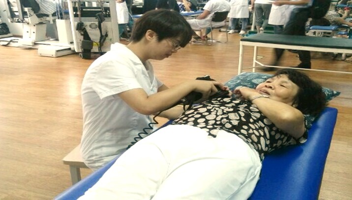 在我系07级王刚学长的帮助下,实习生自七月下旬顺利到科室报道后,两名同学便进入康复科开展正常的实习,首先轮转的为位于医院门诊楼二层的康复一科,其主要负责骨骼肌肉康复。在康复一科实习一个多月以来,员工主要接触到大量骨科术后患者,例如膝关节置换术后康复、股骨骨折术后、肩袖损伤术后的康复等。此外,也接触到部分脊髓损伤、脑卒中与其他软组织损伤的案例,在参与康复治疗的同时,也提升对疾病的认识、进一步规范相关治疗仪器的使用操作,以及不断提升与患者交流的技巧。