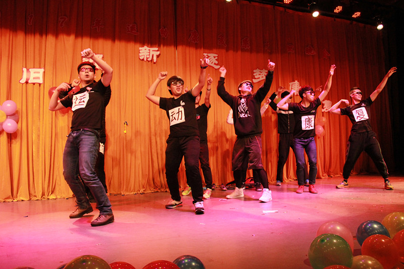 第二阶段开场是由新疆同学为我们带来的极具民族风情《新疆吆喝》,欢快的音乐和极具民族特色的新疆舞步使人热血沸腾,引发了全场一阵又一阵的掌声。紧随其后的是吉他韩语歌曲表演《Eleven·Eleven》,动人心弦的吉他声音和温柔的歌声在让我们领略吉他文化的同时更欣赏到了韩语歌曲的美妙,吉他弹唱《成都》将我们的思绪带往山城成都。紧接着便到了抽奖环节,这一次的抽奖环节想法新颖,通过后台抽号,上台戳气球来进行相应游戏以及获取相应礼品。抽奖过后劲歌热舞《Dance to sing》让场下的观众不停挥舞手中的指灯,并激动地跟着旋律附和。由美声长笛伴奏《Flying Free》结束了第二阶段,动听的歌声和幽默的动作令同学们不停地发出惊叹。