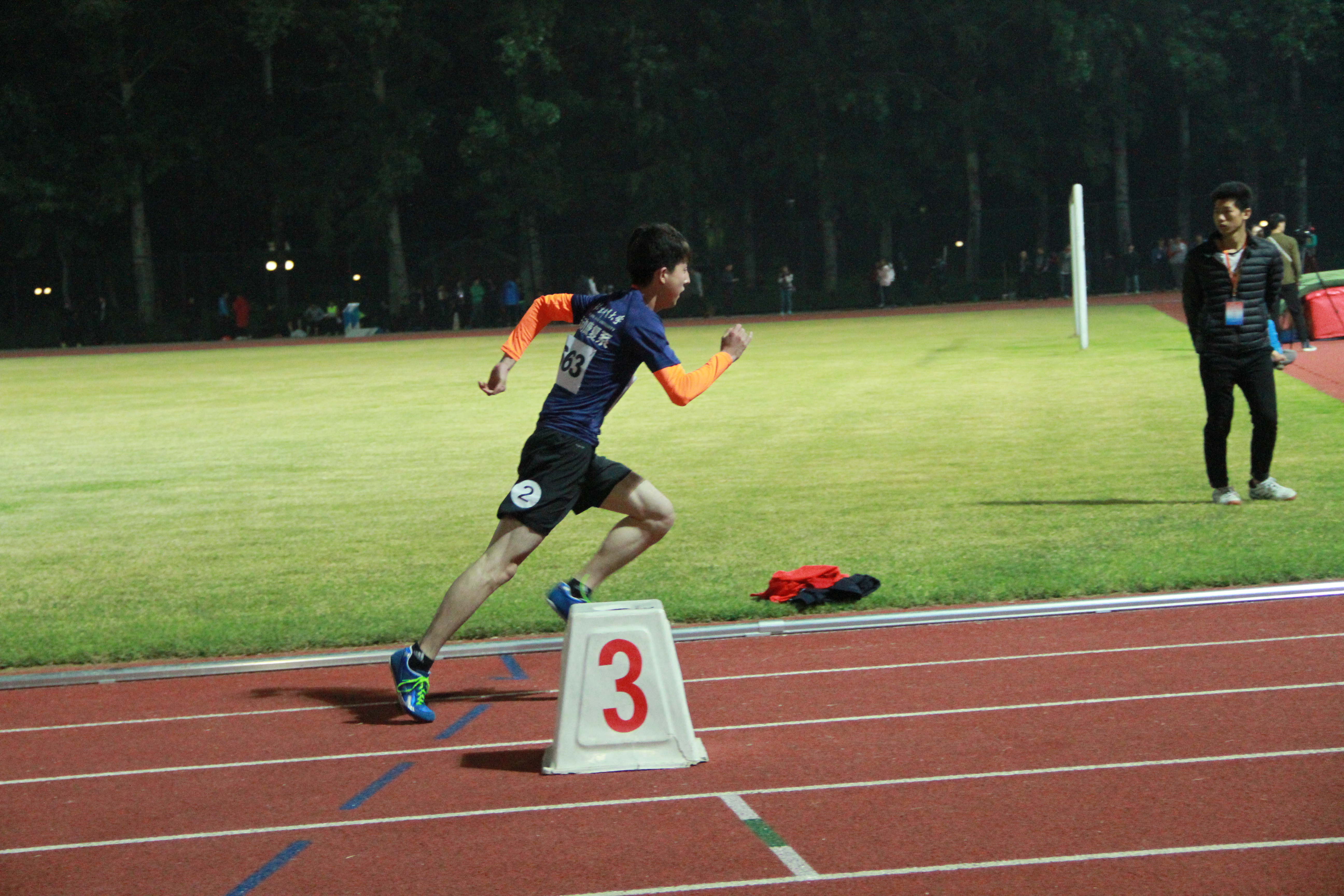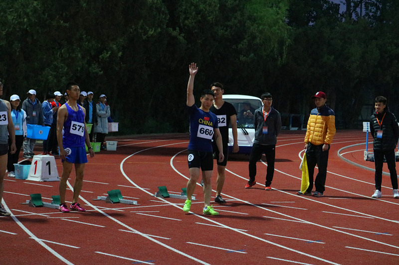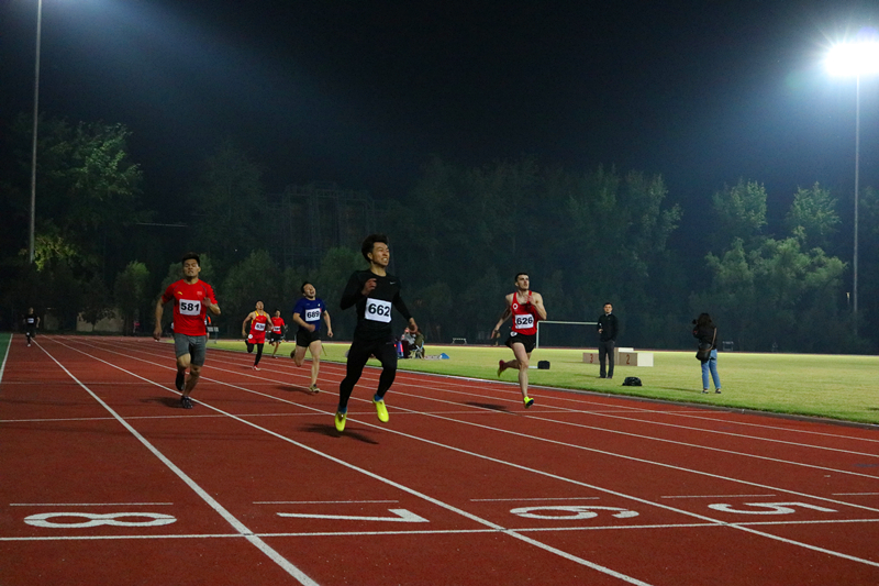 首先进行的是女子100米和男子100米的决赛,女子组刘倩楠以14’31”的成绩取得第四名,男子组杨二伟和张鹏分别以11’92”和12’06”的成绩取得第五名和第七名。接下来进行的是女子400米和男子400米的决赛,女子组李婵婧以1’’18’90”的成绩取得第五名,男子组郭盛博虽然在比赛中突发腿抽筋的状况,但他仍然忍着腿的疼痛跑完全程,并以1’’02’79”的成绩取得第七名。然后教工也进行了6x200米的接力比赛。今晚最后一个项目是女子4x100米和男子4x100米的决赛,女子组在王姿入、黑妍妮、柏慧和刘倩楠四名运动员的共同努力下以1’01’’38”的成绩取得了第三名,男子组在张鹏、甘燎延、李颂恩、杨二伟四名运动员齐心协力的拼搏下以45’89”取得了第二名的优异成绩。