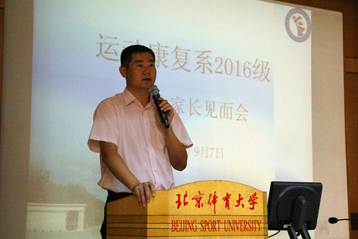 接着苍海书记介绍了运动康复系的教学与办公组成。他对康复系的建系历程进行了概述,并对康复系丰富多彩的学习和课余生活进行了简单的介绍,同时向家长们详细阐明了运动康复系的培养方案以及毕业生的就业前景。其中,苍书记介绍到,运动康复系具有非常良好的实习条件,实施半年医院康复科与半年跟随运动队的实习方案。运动康复系精英化的教育一定能使所有康复系的同学们收获颇丰。