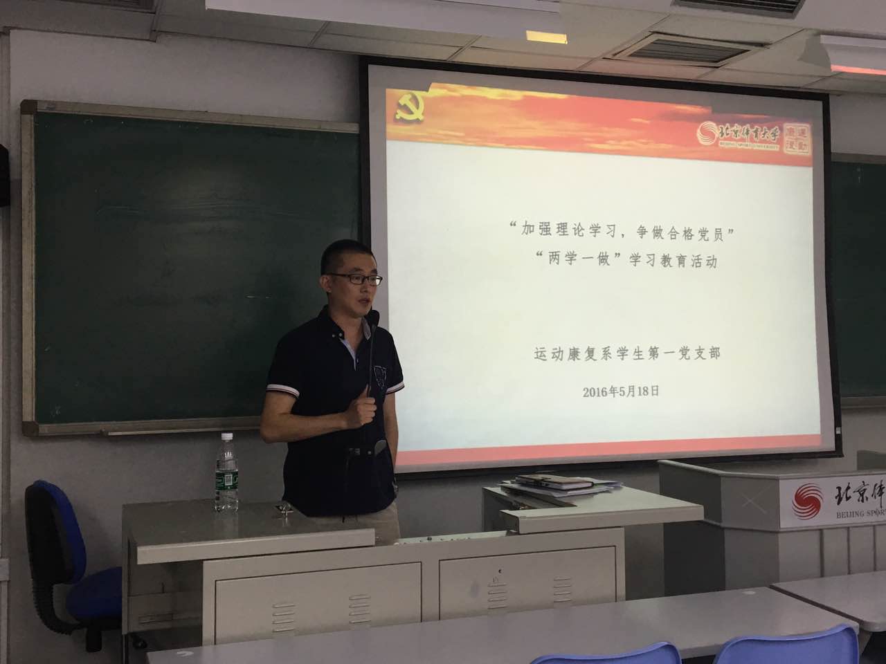 2016年5月18日晚8:00,运动康复系员工第一党支部于教学楼304召开了“两学一做”动员会暨学习教育活动。支部全体党员、预备党员及入党积极分子参加了此次会议,会议由运动康复系员工第一党支部书记韩万滨老师主持。