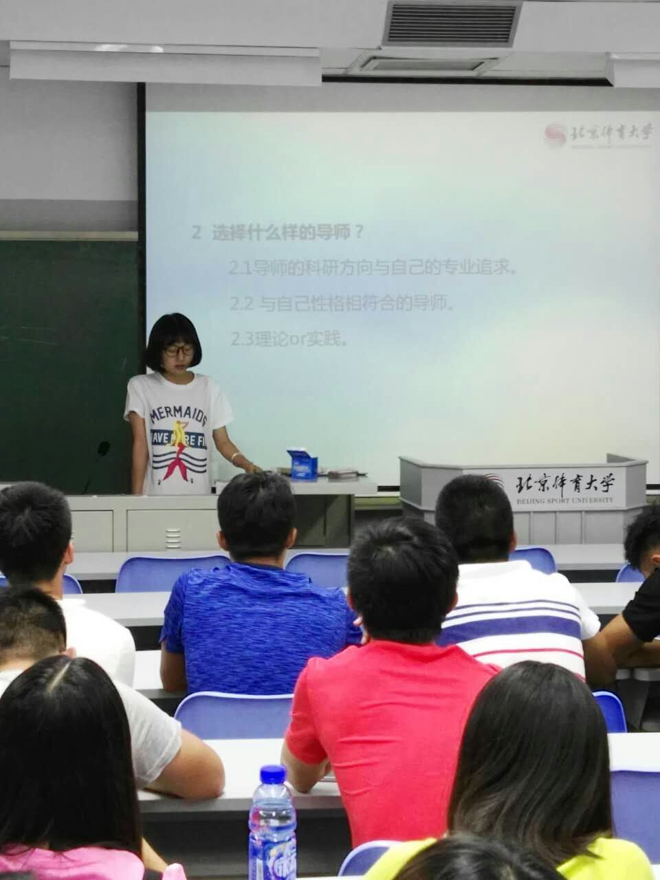 辅导员杨之慧老师邀请2015级康复系研究生代表刘杰、朱凤林、邱凌分享了自己研一学习的心得体会。分享的师兄师姐有的是本校直升、有的是从外校考入,不同专业和学习背景,也曾有着和在座新生一样的迷茫。首先,刘杰师兄对新生们加入运动康复系大家庭表示热烈地欢迎,并真诚生动的向大家讲述了作为外校考入的员工如何更好的适应体大的学习生活并分享了自己选课、课堂学习和兼职的经验教训。随后,朱凤林为大家分享了自己的选课经验以及选课注意事项,希望同学们能根据自己的实际情况选择合适的课程,同时为新生们的课堂学习提供了一些建议。此外,鼓励同学们尽早发文章,为顺利毕业做好准备。最后,邱凌向新生们分享了选择硕士导师的小建议,包括如何通过搜集导师信息从而进一步了解导师,选择研究方向与自己专业追求相一致、与自己性格相符合的导师,以及如何与导师进行有效沟通。最后是新生提问环节,新生们反响热烈,与师兄师姐主动沟通,积极发言提问。