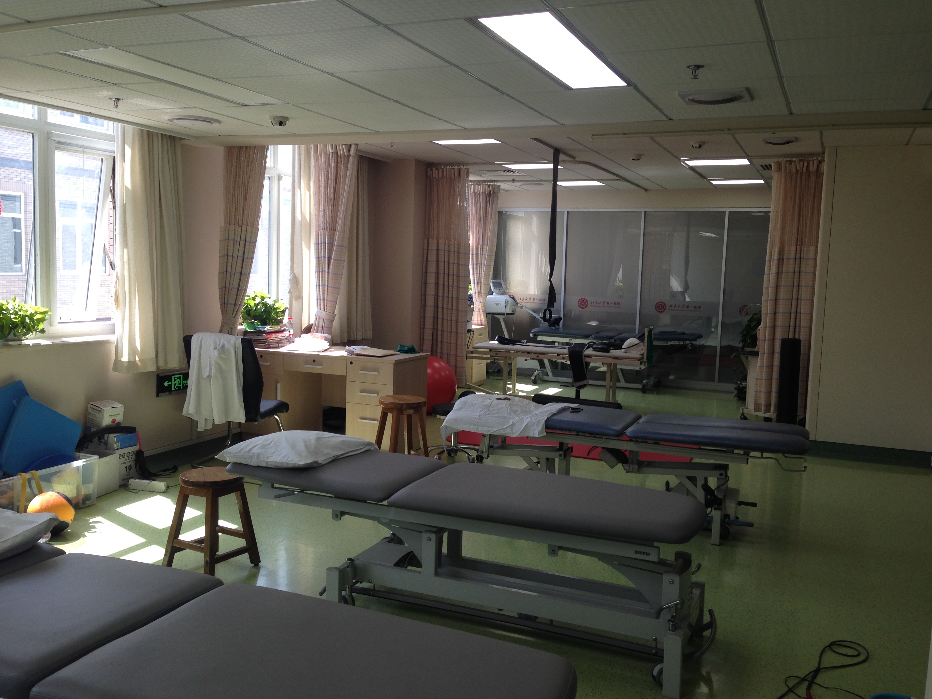在这短短的一个月内,我们逐渐熟悉了北大一院康复科的一切,例如作息时间、每个老师的分工和特点、以及各种设备的使用等。我们真真切切的见到了各种各样的病人,同时认真观察,学习老师拿到一个新的病例是如何问诊、如何评估的,再如何根据病人病情的不同制定妥善治疗计划。