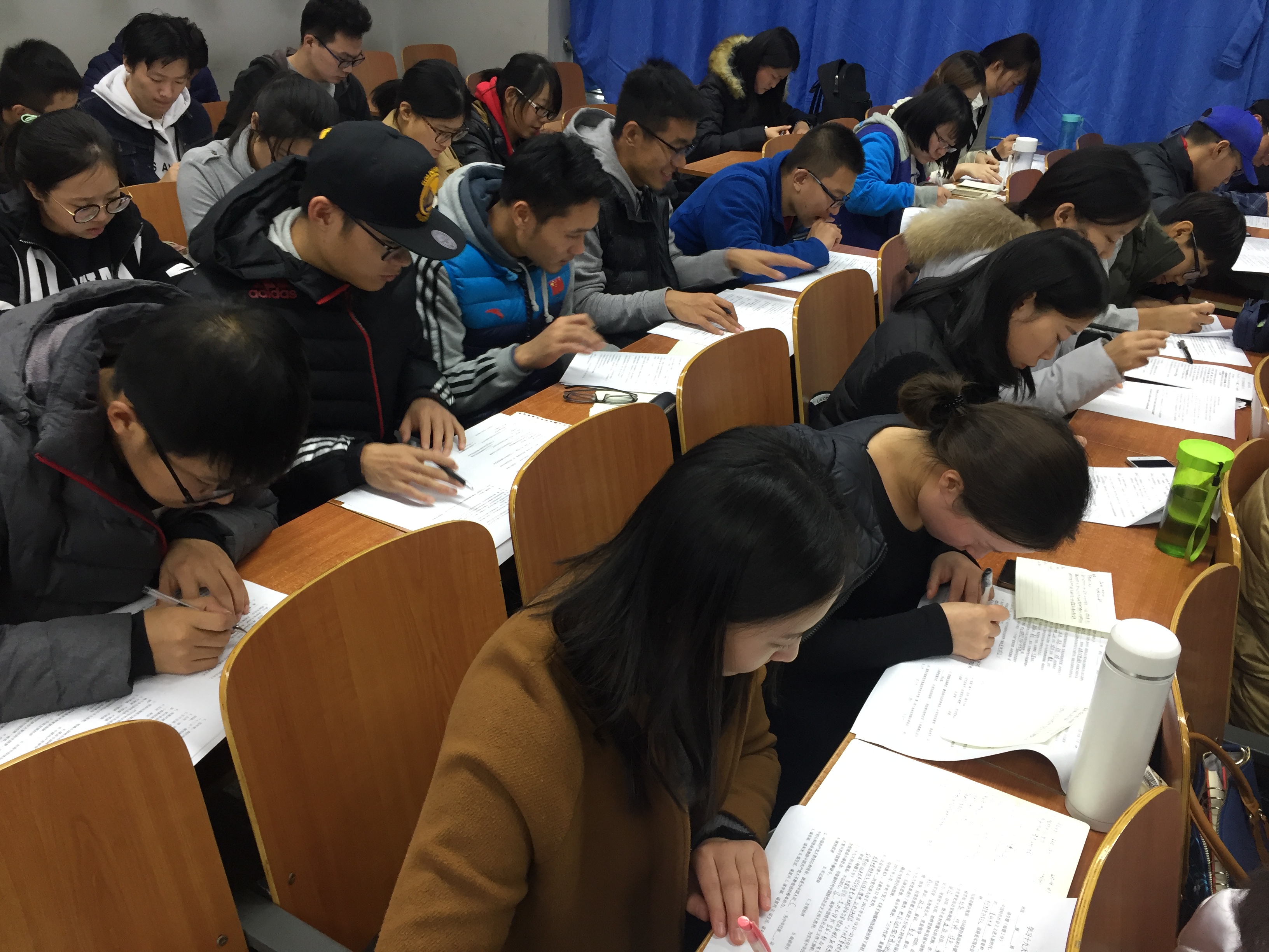 答卷测试采用闭卷形式进行,测试内容分别包括填空、单选、多选和简答,满分100分。全程测试顺利进行,体现了大家对十九大报告精神学习的积极性及良好的掌握程度。测试结束后,由各支部书记对测试题目进行讲解,并及时将大家的知识掌握情况反馈给参与的每位同学。