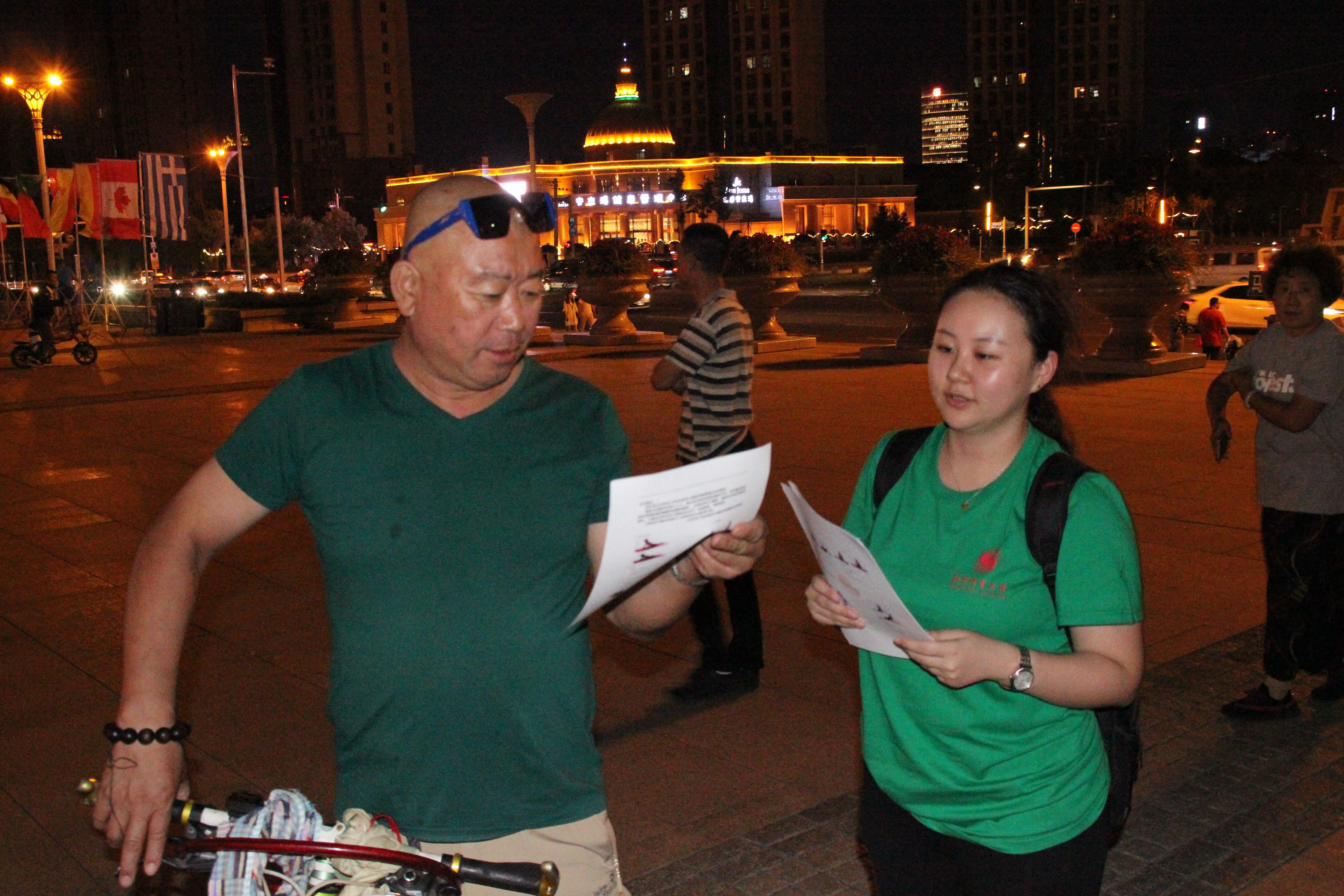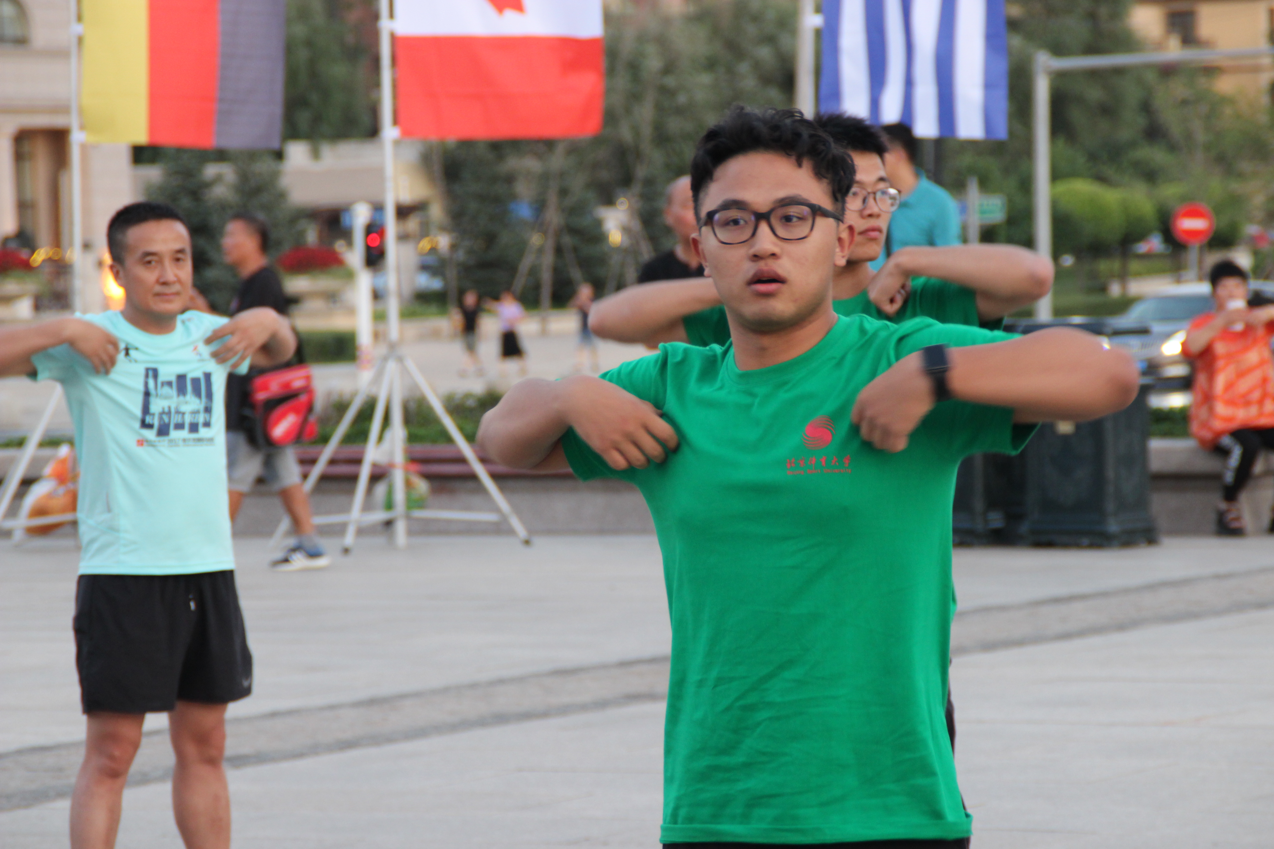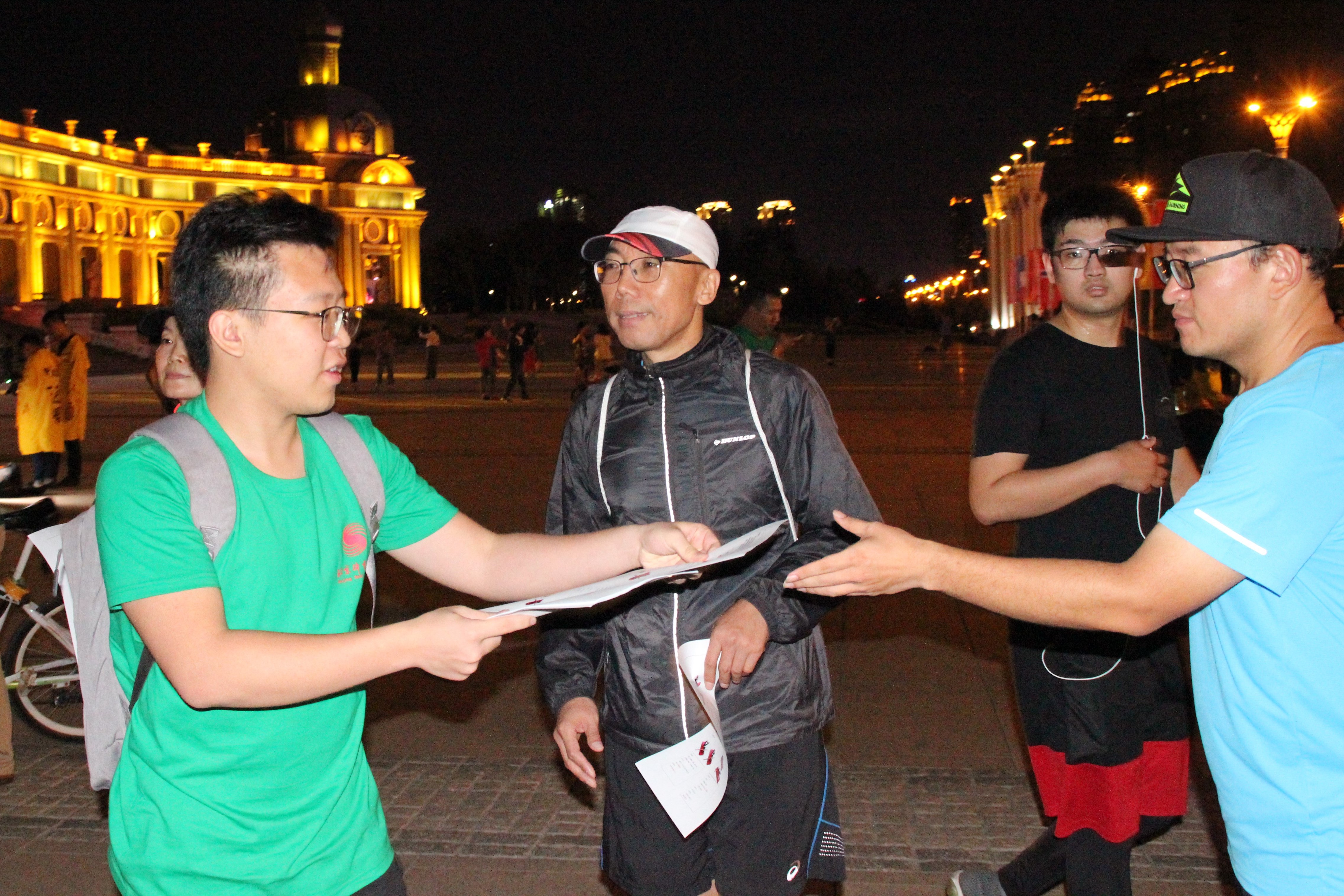 2018年8月16日晚6:30,实践团的成员们在白震民老师的带领下前往音乐长廊为跑步先锋俱乐部进行志愿服务。