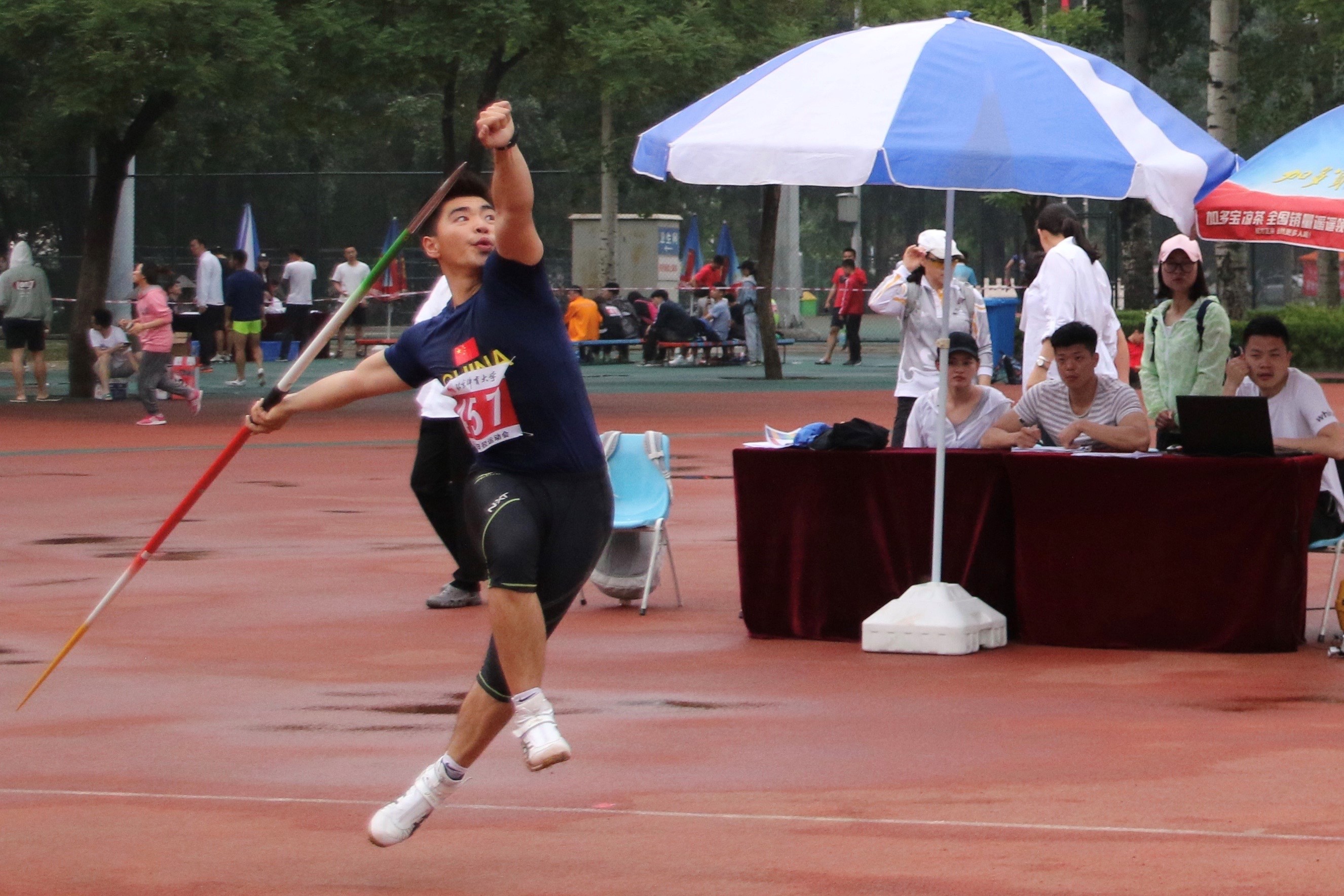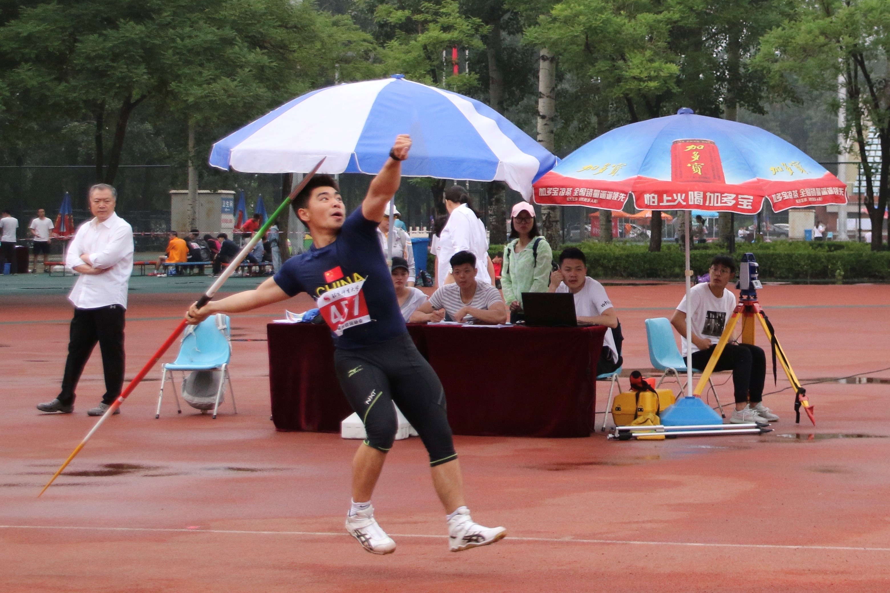 2018年5月17日上午8:30,男子乙组标枪决赛在东田径场准时开始,我院马永晋同学在比赛中稳定发挥,表现出色,以54.55米的杰出成绩为学院带回今日首个冠军奖牌!