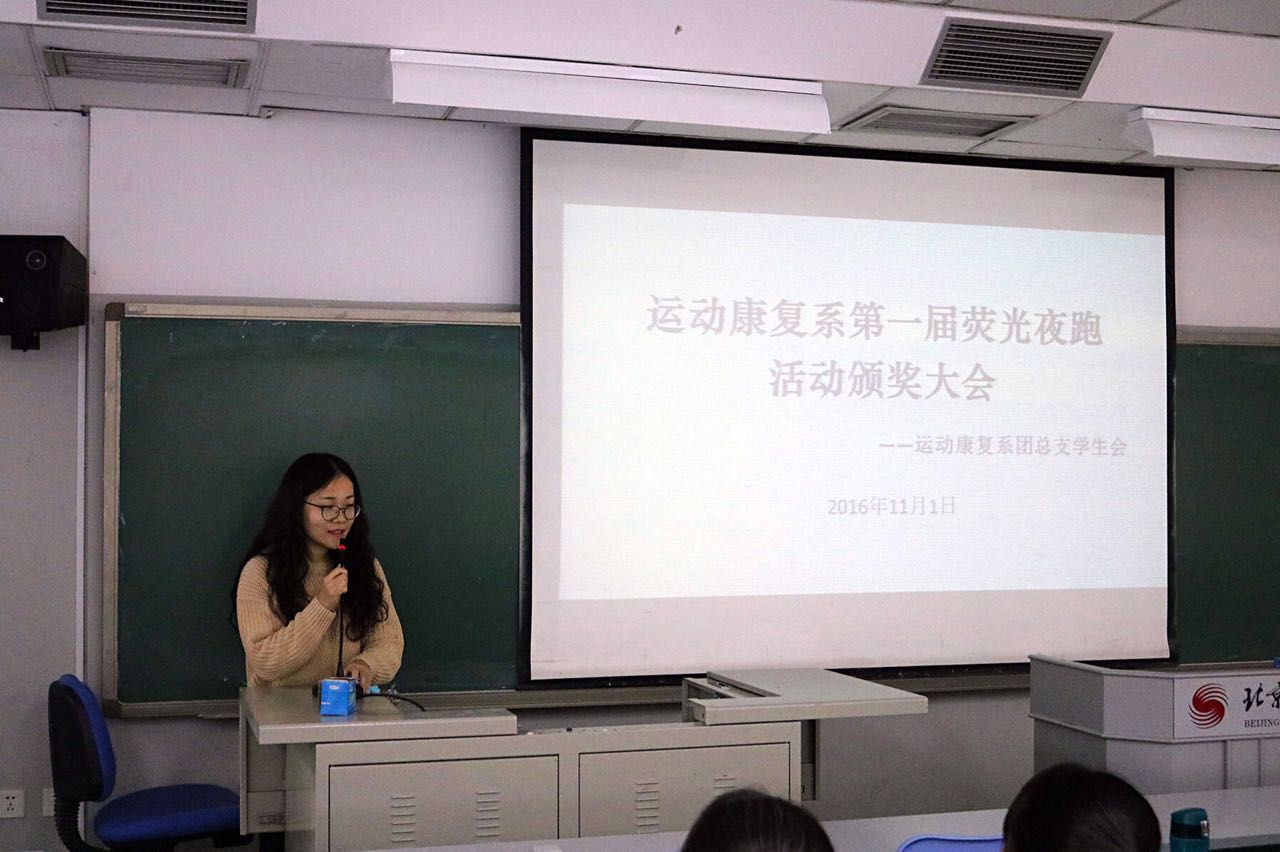2016年11月1日,荧光夜跑活动的总结表彰大会在教学楼206教室如期举行,出席嘉宾有:运动康复系员工会团总支书记、2013级、2015级辅导员白玉茗,第十届运动康复系员工会主席侯榕芳。