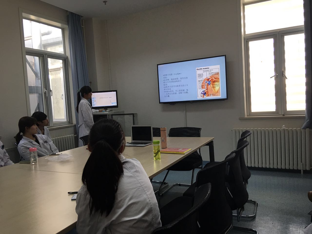这段时间的实习中一大亮点便是专题报告交流会。在报告交流会之前,康复治疗室的胥大夫将我们实习的6个人分为2个小组,给每个小组布置一个专题的作业,分别以前十字交叉韧带和肩峰下撞击综合征为主题,一周后在会议室进行专题报告并点评。