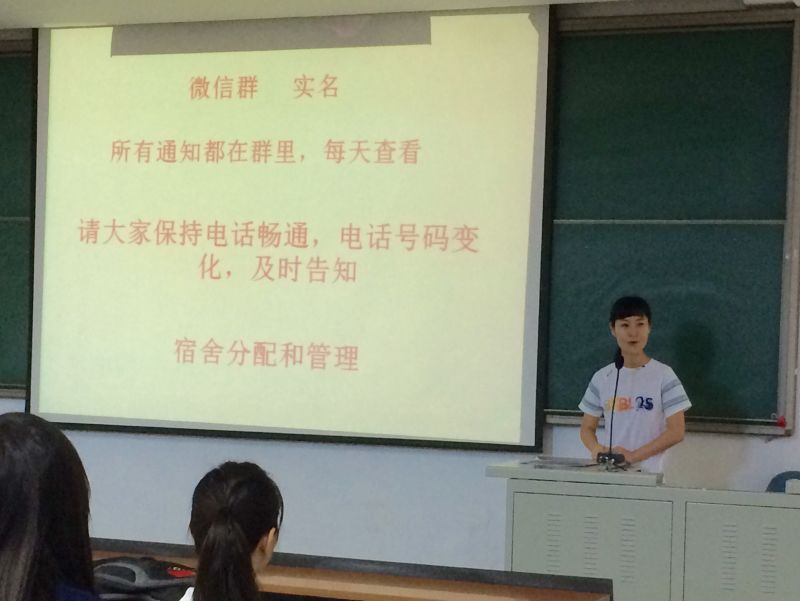 会议由辅导员杨之慧老师主持,我系2016级研究生参会。杨之慧老师首先对各位新生的顺利入学表示了热烈欢迎,并对我系2016级研究生的整体情况、专业分布等以及研究生三年的学习、时间安排进行了介绍。随后,杨老师还向大家讲解了研究生期间经常用到的网站、教务系统的使用方法。第三,杨老师还就“两禁”、宿舍管理和研究生外出请销假制度等向大家进行讲解,并要求每一个同学在会后认真学习校规校纪。最后,杨老师将之后几天的注册、军训、开学典礼、体检等事务为同学们进行了梳理。