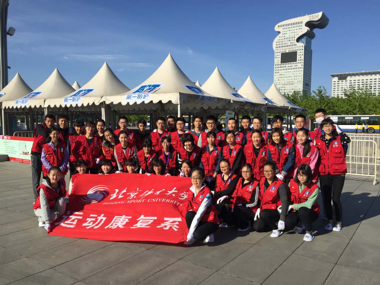 2016年4月17日星期日,“北京长跑节”迎来了60年周年庆典,运动康复系团总支的50位志愿者来到了比赛的终点--鸟巢,为跑者提供赛后的拉伸防护工作。运动康复教研室党支部书记张恩铭老师、2014级41名同学以及2015级9名同学参加了此次志愿活动。