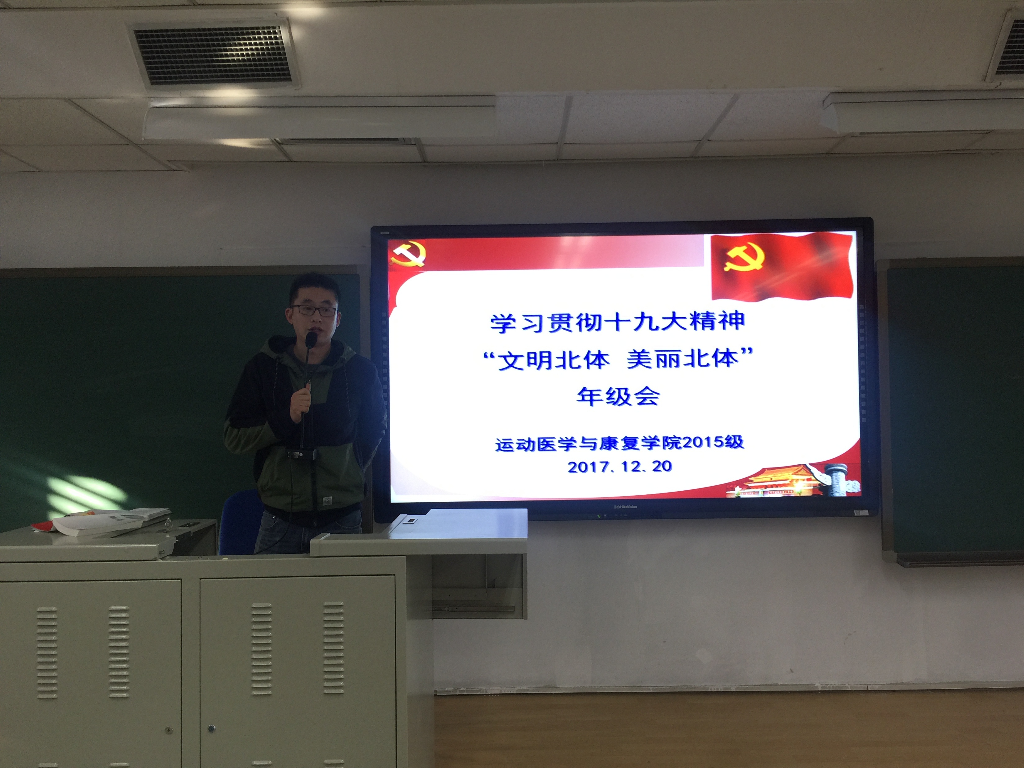 最后,韩老师结合“文明北体,美丽北体”主题教育实践活动,重点对电动车、防火、消防通道的安全以及遵守课堂纪律等问题,提出了具体要求。