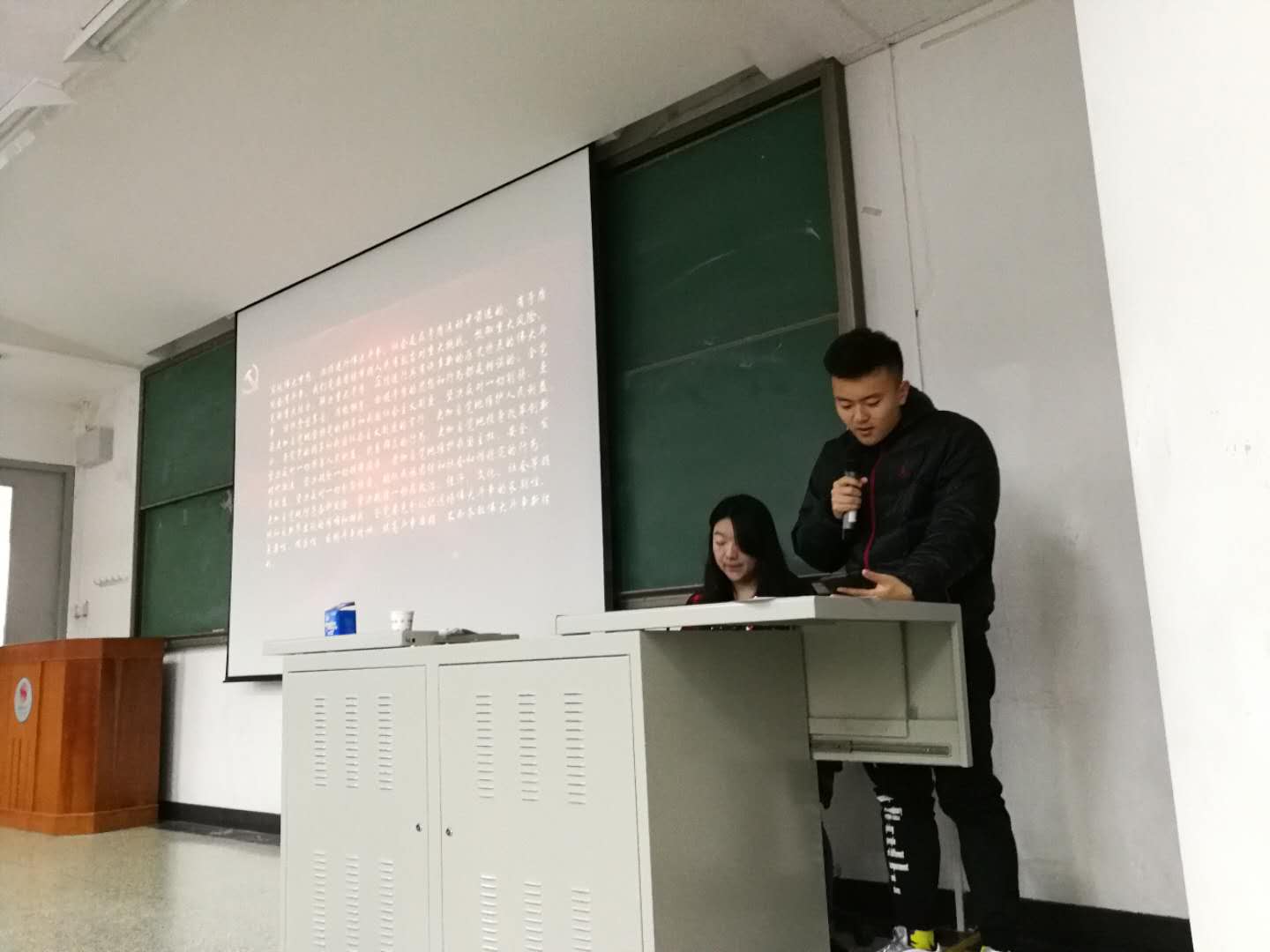 12月27日上午10:00在215教室,公司本科2017级利用形式政策课时间举办了十九大报告精神学习分享会。2017级全体员工参加,四班全体班委主持了此次活动。