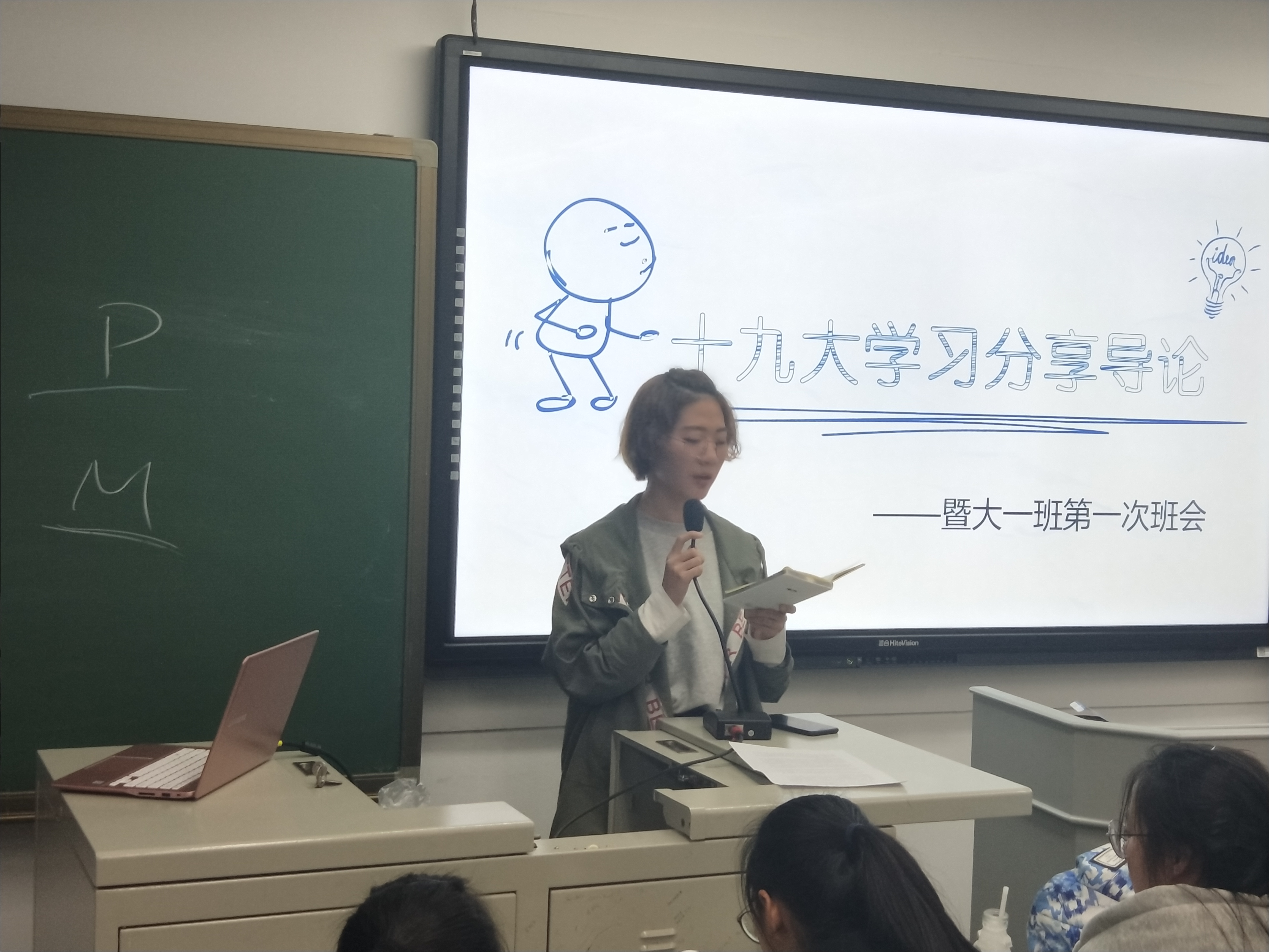 2017年11月9日下午4:30在教学楼403教室,公司2017级1、2班全体同学举办了“十九大报告学习分享讨论”活动。本次活动由1班班长郭依然,2班班长骆俊江共同主持,辅导员王立娟老师参加了此次活动。